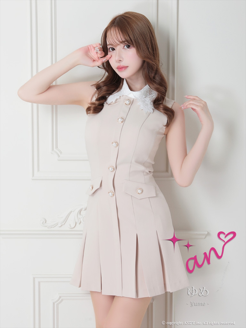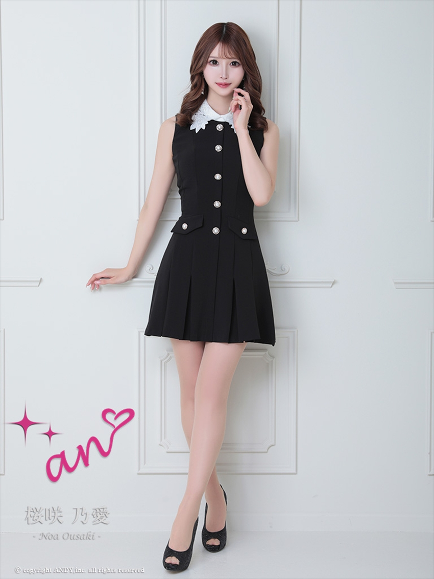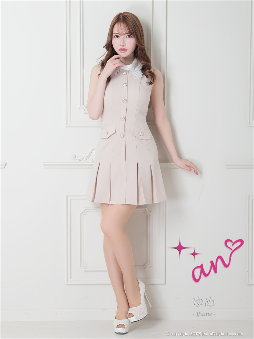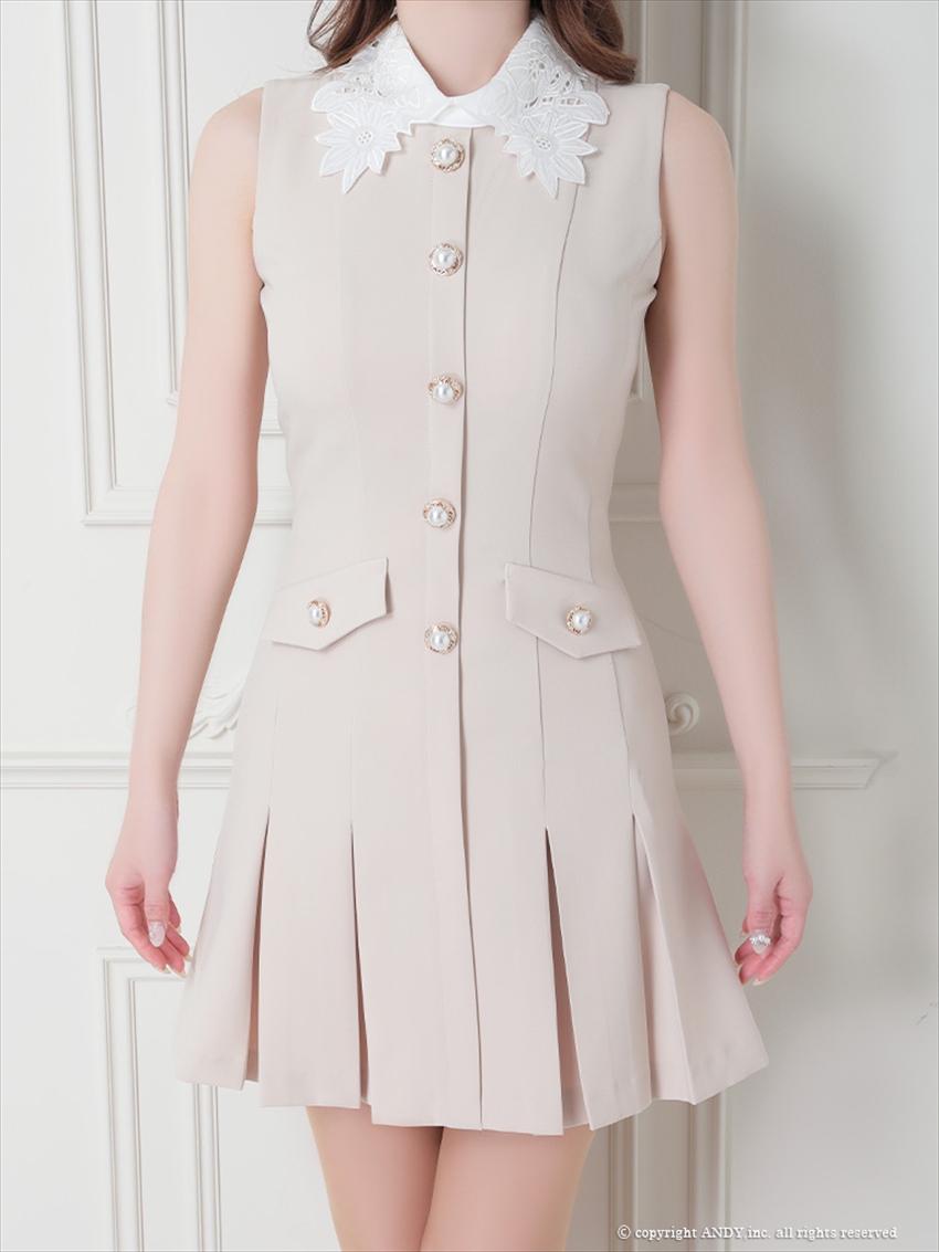 [Andy/an][an]襟付き・パールボタン・ポケット・ノースリーブ・Aライン・フレア・ワンピース・ミニドレス《送料&代引き手数料無料》 [an-aoc3739]