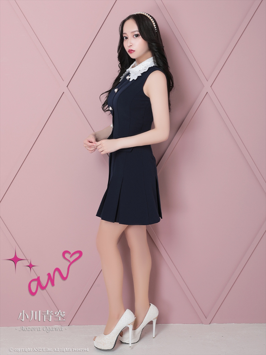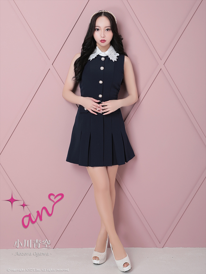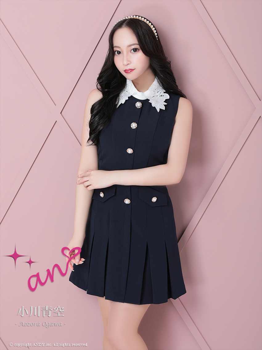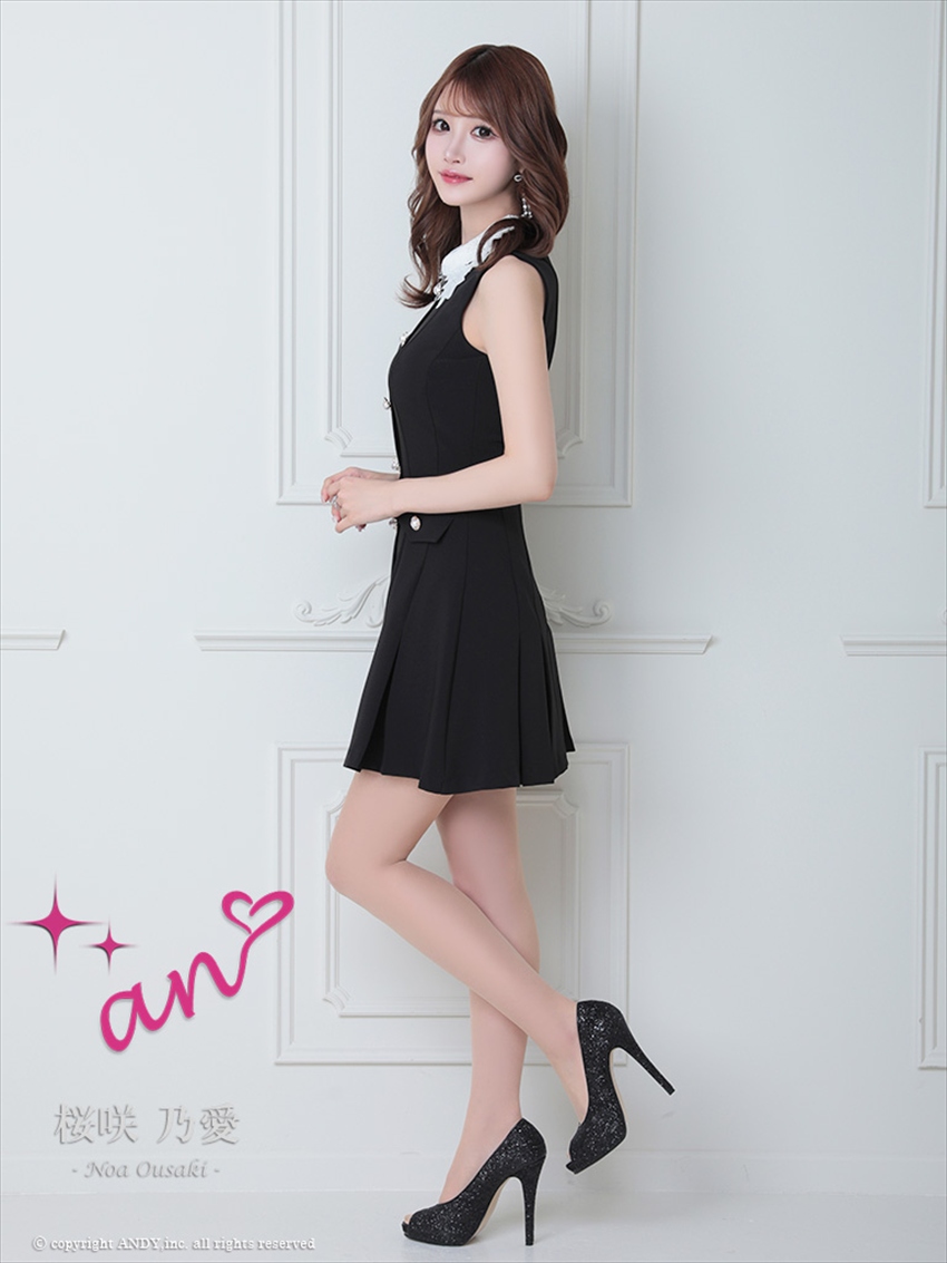 [Andy/an][an]襟付き・パールボタン・ポケット・ノースリーブ・Aライン・フレア・ワンピース・ミニドレス《送料&代引き手数料無料》 [an-aoc3739]