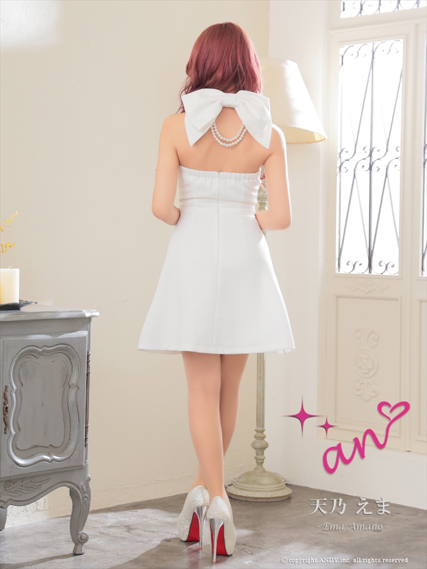 [Andy/an]ミニ・ビッグリボン・ホルターネック・Aライン・パール・ファスナー・ボタン・ミニドレス・ワンピース《送料&代引き手数料無料》 [an-aoc3625]