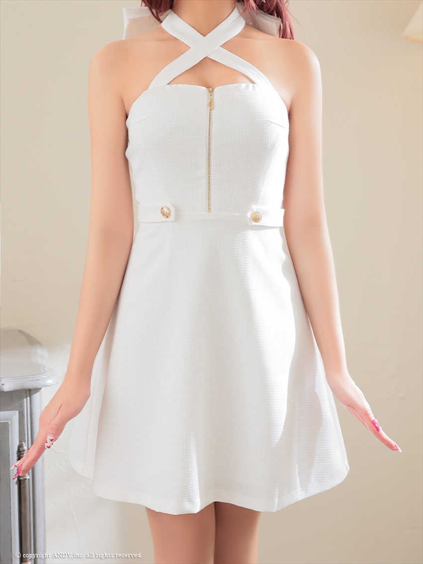 [Andy/an][Andy]ホルターネック ・フロントジップ・ハイネック・ビジュー・リボン・フレア・ミニドレス・キャバドレス《送料&代引き手数料無料》 [an-on2908]