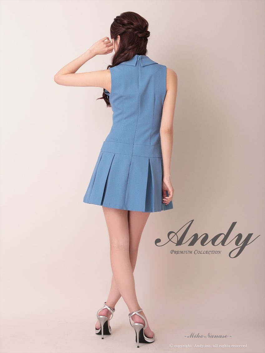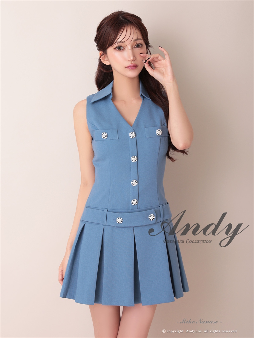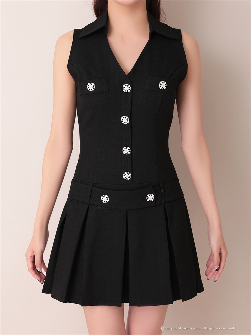 [Andy/an][Andy]ワンカラー・ビジューボタン・襟付き・ノースリーブ・Vネック・ボックスプリーツ・フレア・ミニドレス《送料&代引き手数料無料》 [an-ok2960]