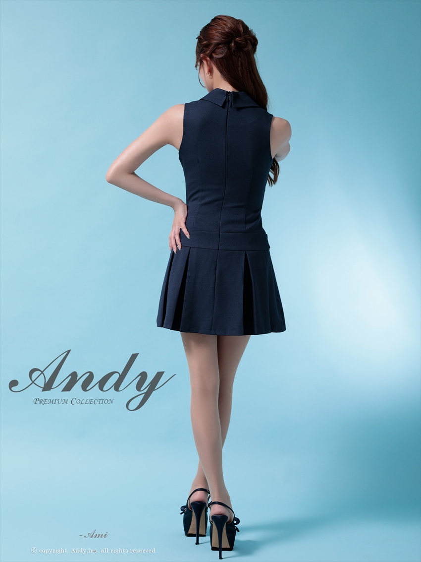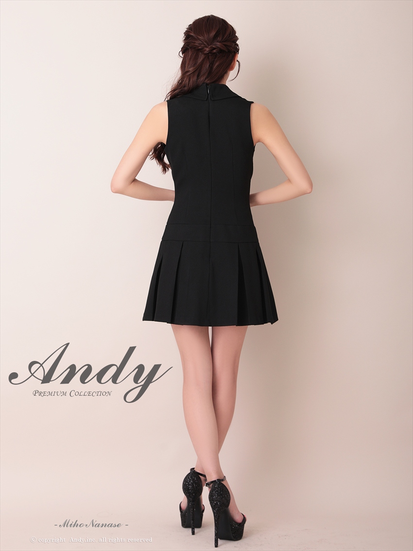 [Andy/an][Andy]ホルターネック ・フロントジップ・ハイネック・ビジュー・リボン・フレア・ミニドレス・キャバドレス《送料&代引き手数料無料》 [an-on2908]