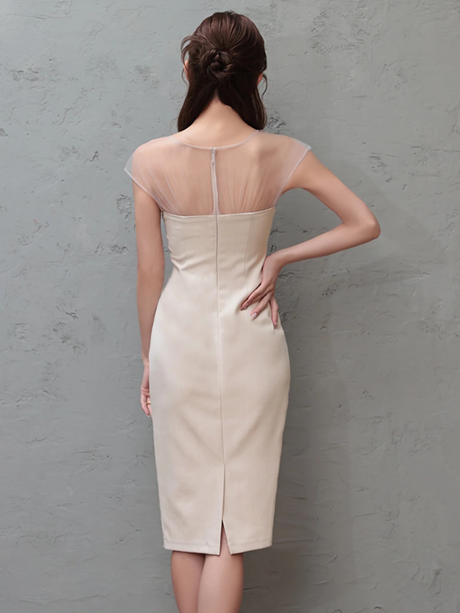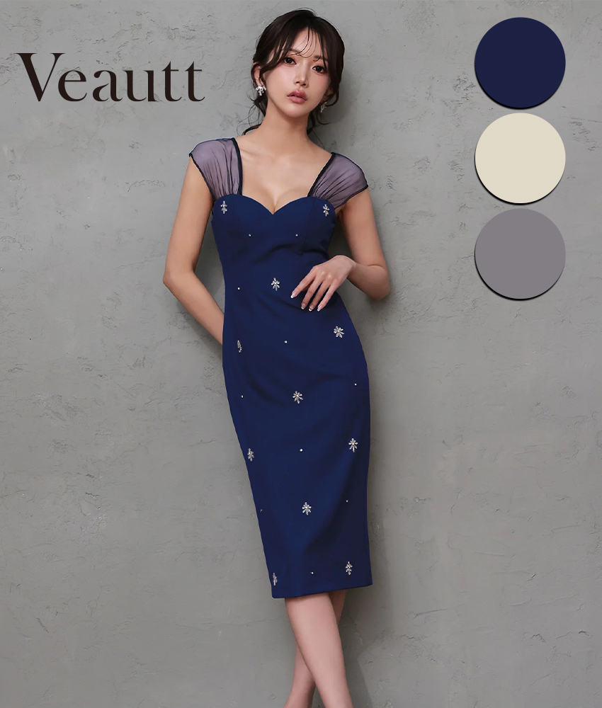 [Veautt]シアーショルダー・ビジュー・タイト・ミディアムドレス《送料&代引き手数料無料》
