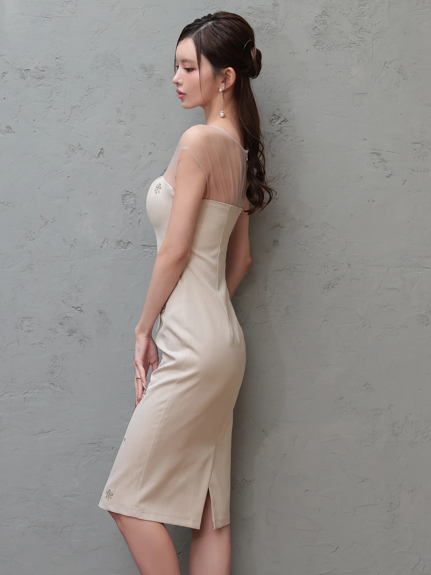 [Veautt]シアーショルダー・ビジュー・タイト・ミディアムドレス《送料&代引き手数料無料》 [ar-vt082605]