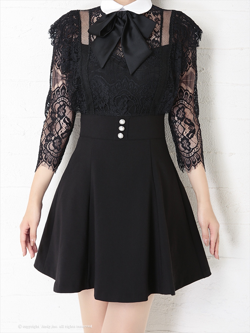[Andy/an][Andy]半袖・ドットレース・リボン・タイト・ミニドレス・ワンピース《送料&代引き手数料無料》 [an-on2807]