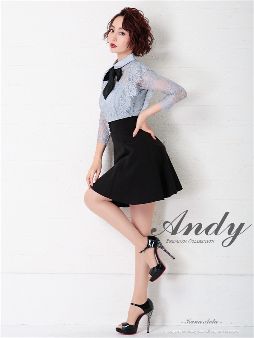 [Andy/an][an]襟付き・リボン・レース・七分袖・フレア・Aライン・ミニドレス・ワンピース・キャバドレス《送料&代引き手数料無料》 [an-ok2728]
