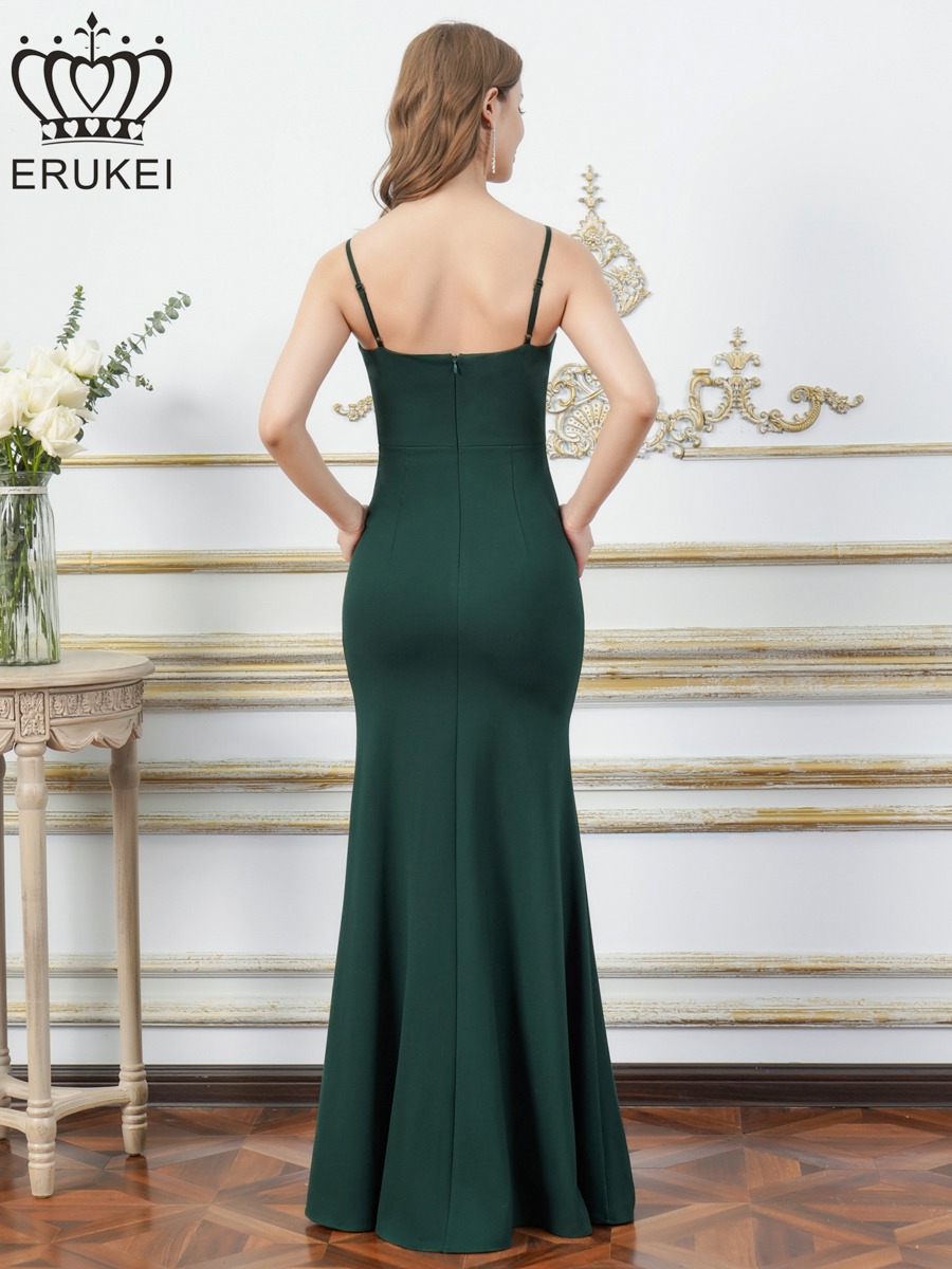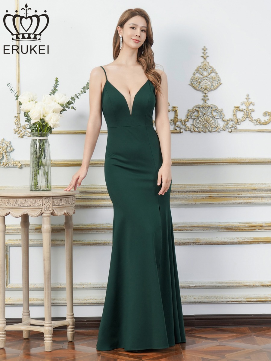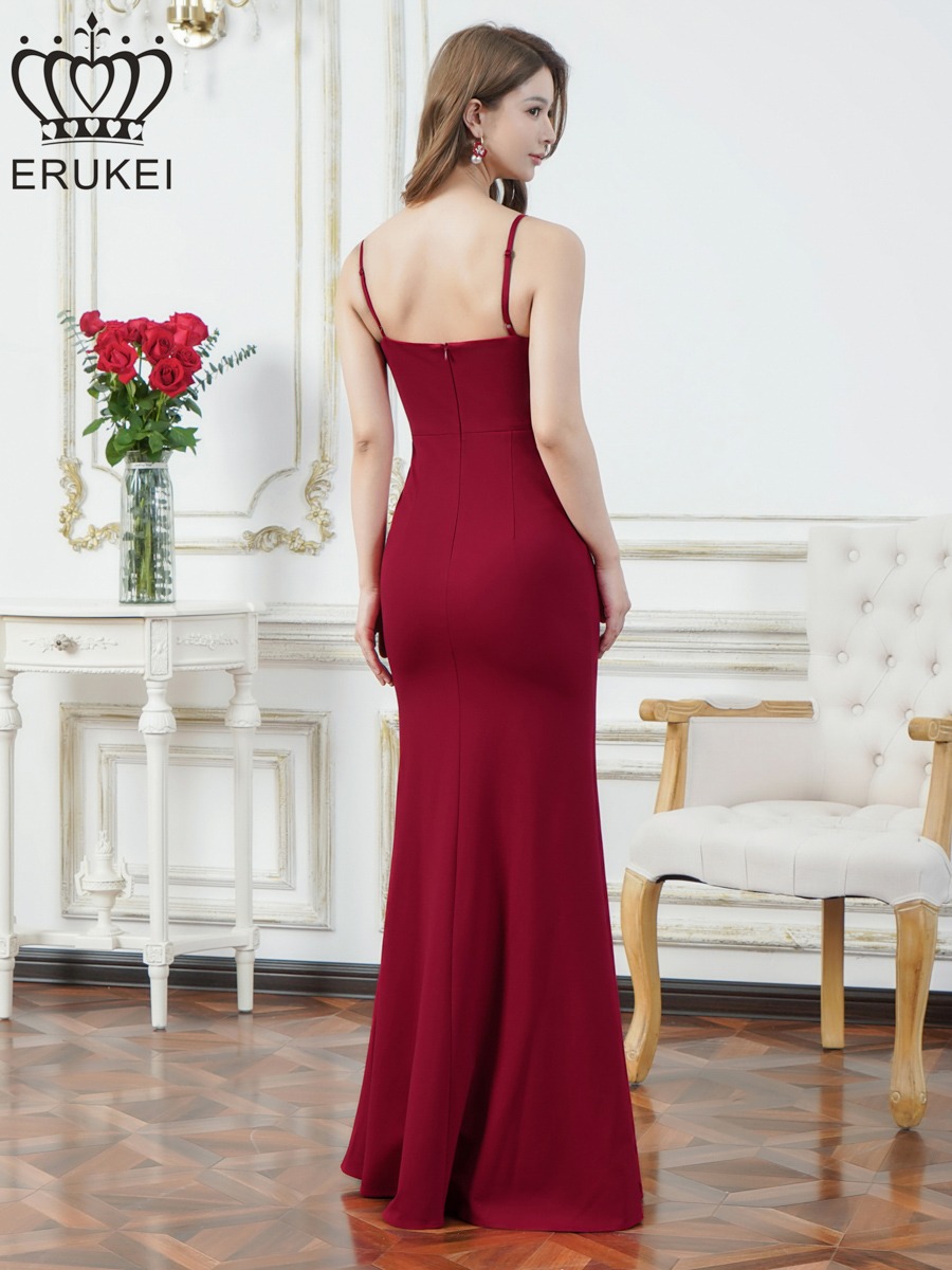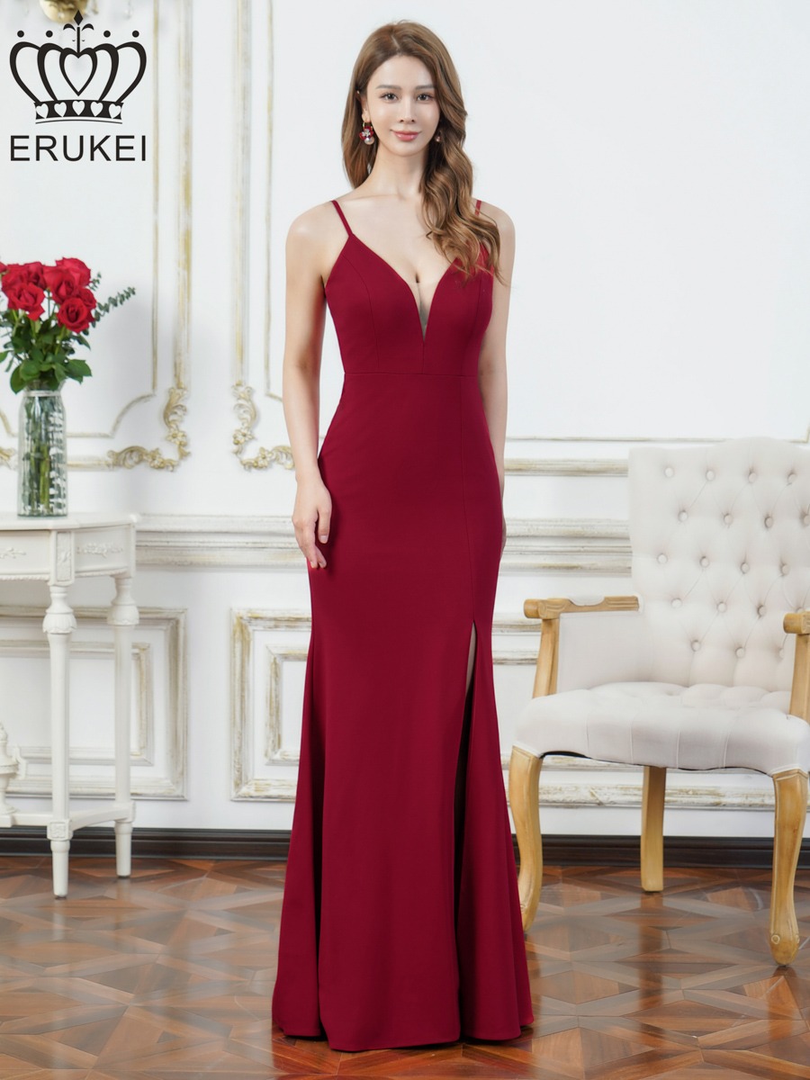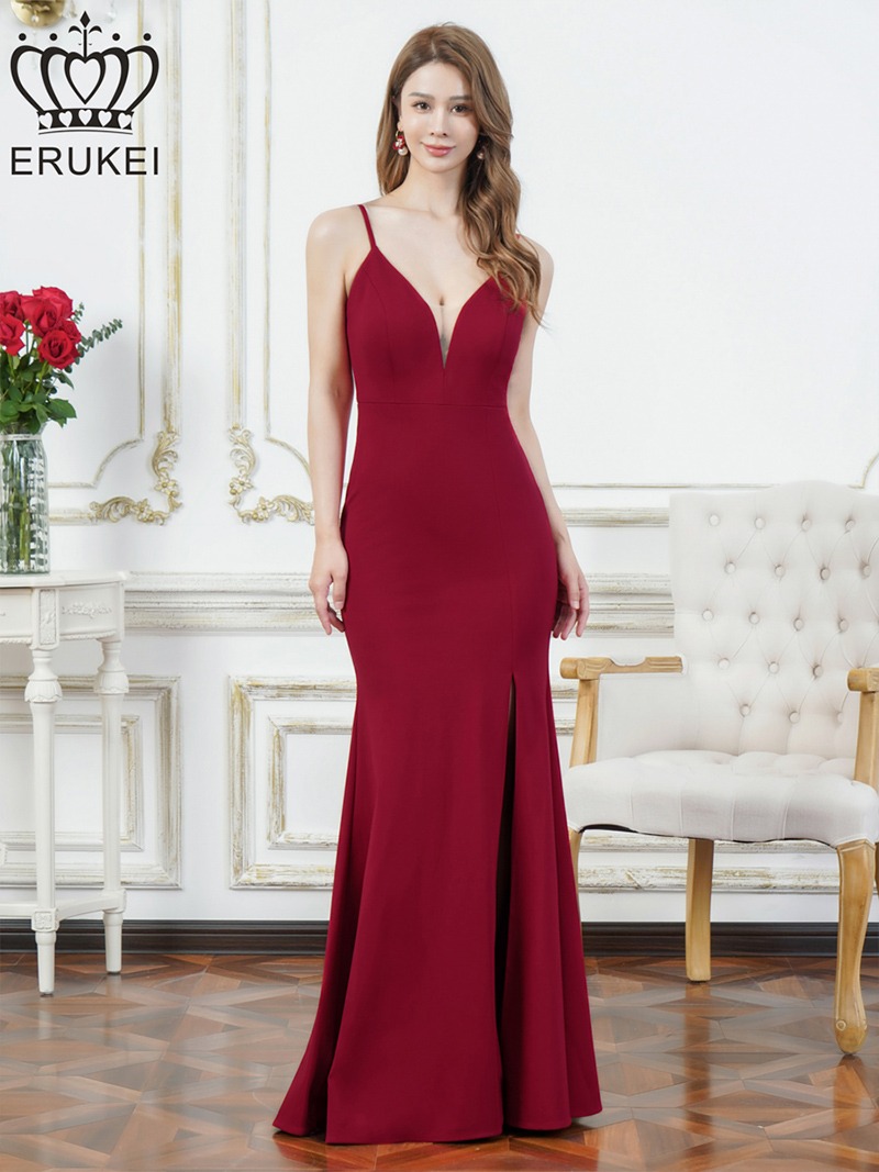 [ERUKEI]ワンカラー・キャミソール・Vカット・シアー・スリット・タイト・マーメイド・ロングドレス[送料無料] [lk-e25205]
