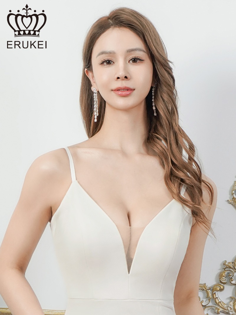 [ERUKEI]キャミソール・カットアウト・ギャザー・スリット・タイト・マーメイド・ロングドレス[薗田杏奈着用][送料無料] [lk-s37208]