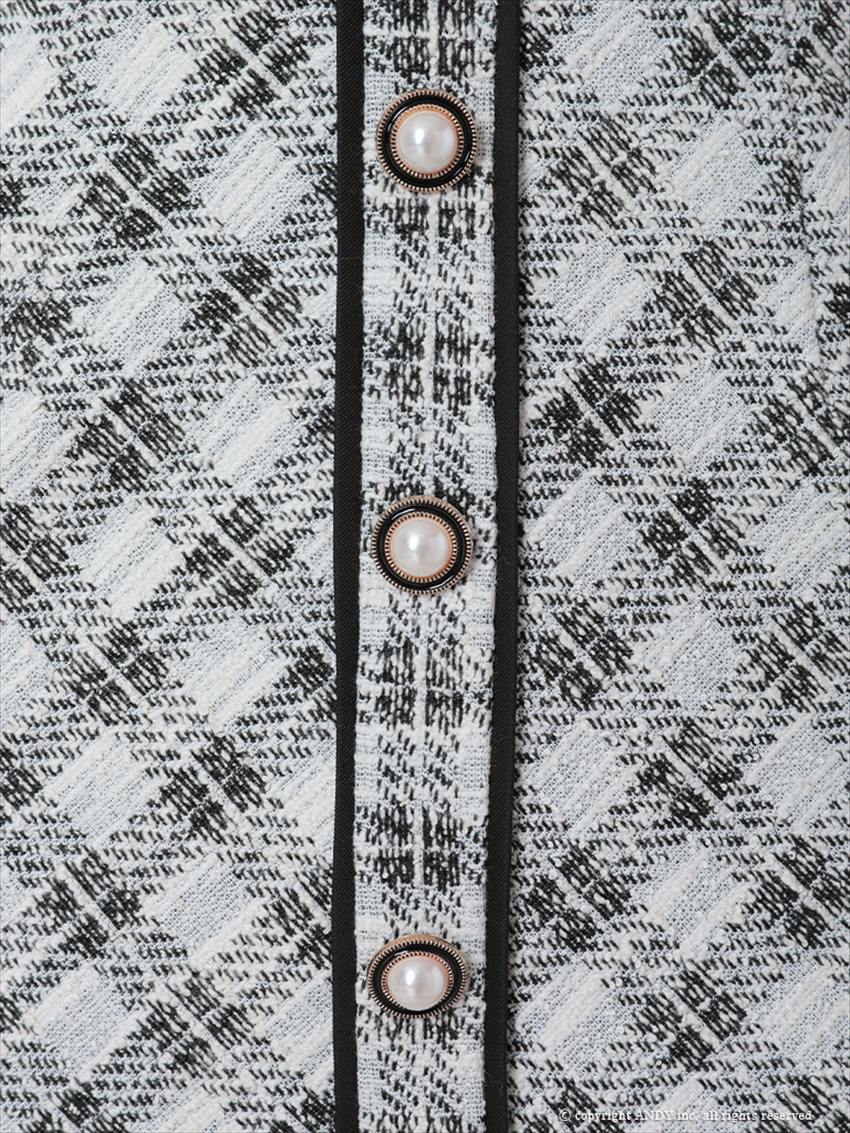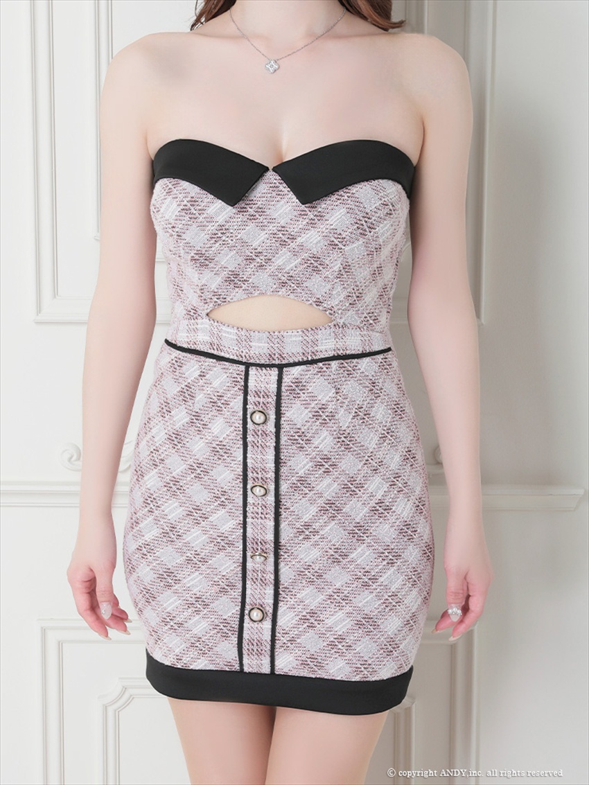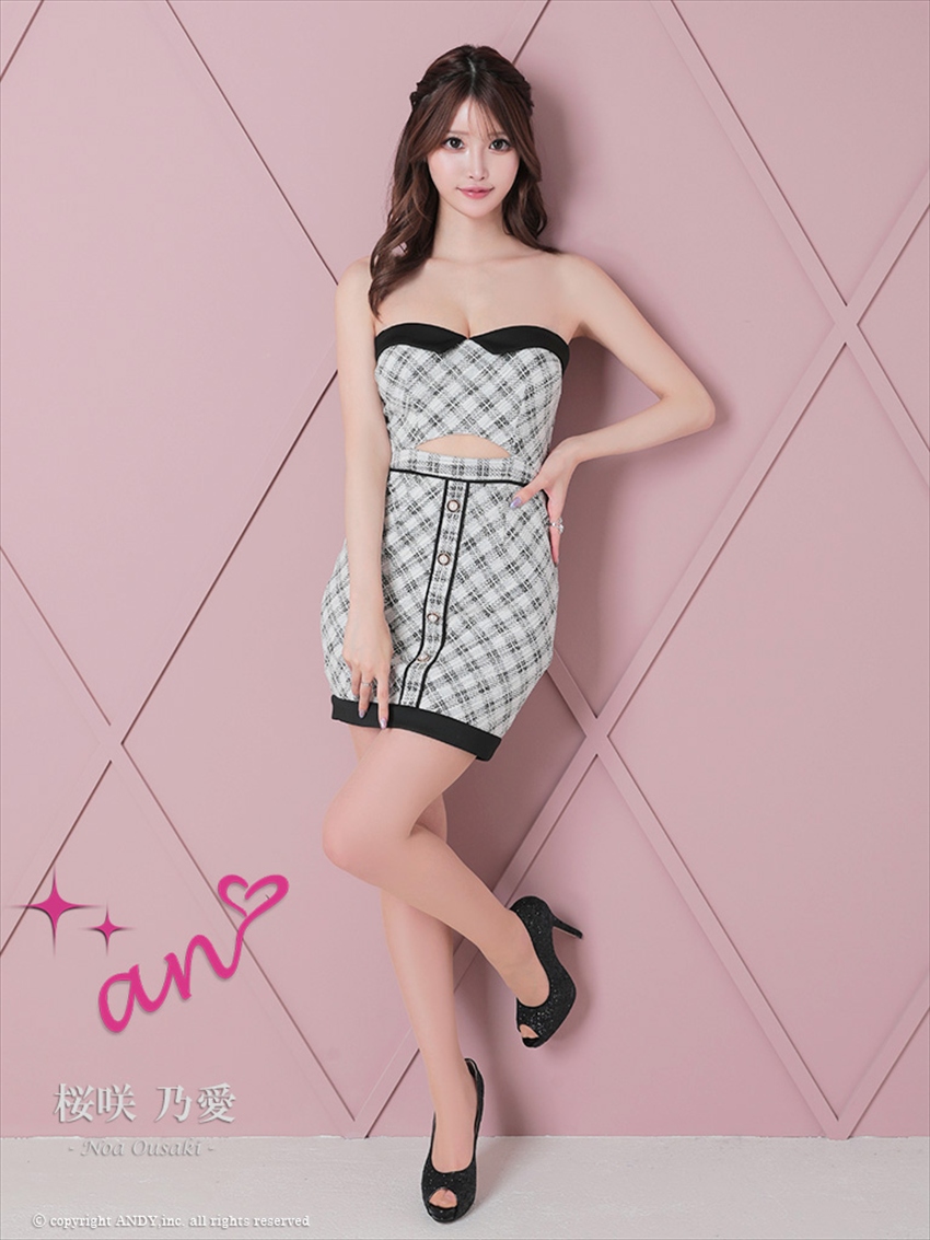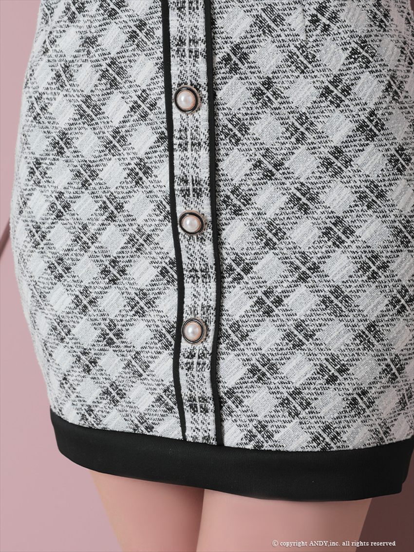 上品なツイード柄にブラックラインが映えるミニドレス。 ビスチェ風デザインで女性らしいシルエットを演出。 ナイトシーンで主役になれる一着。 お仕事用はもちろんパーティーなどにもおすすめ! ※売り切れのサイズをご希望の際はお問い合わせ下さい。 ※銀座七丁目のCOLORDRESSGINZAでもご試着可能です。 |