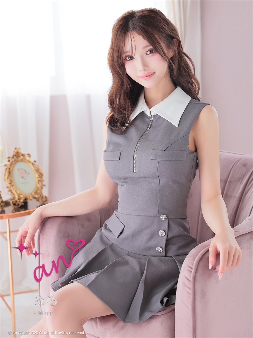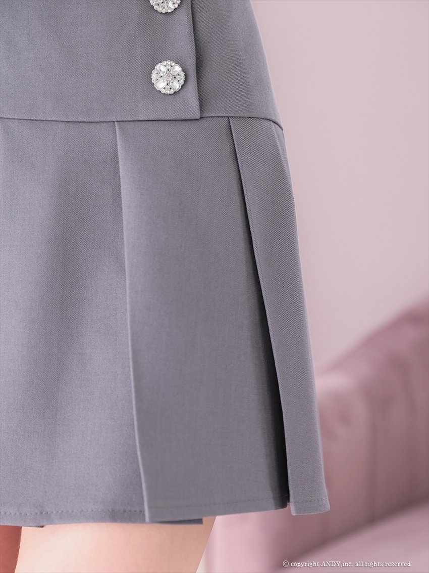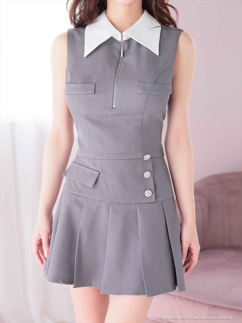 [Andy/an]襟付き・バストジップ・ノースリーブ・プリーツ・ビジューボタン・フレア・セットアップ・ミニドレス《送料&代引き手数料無料》 [an-aoc4004]