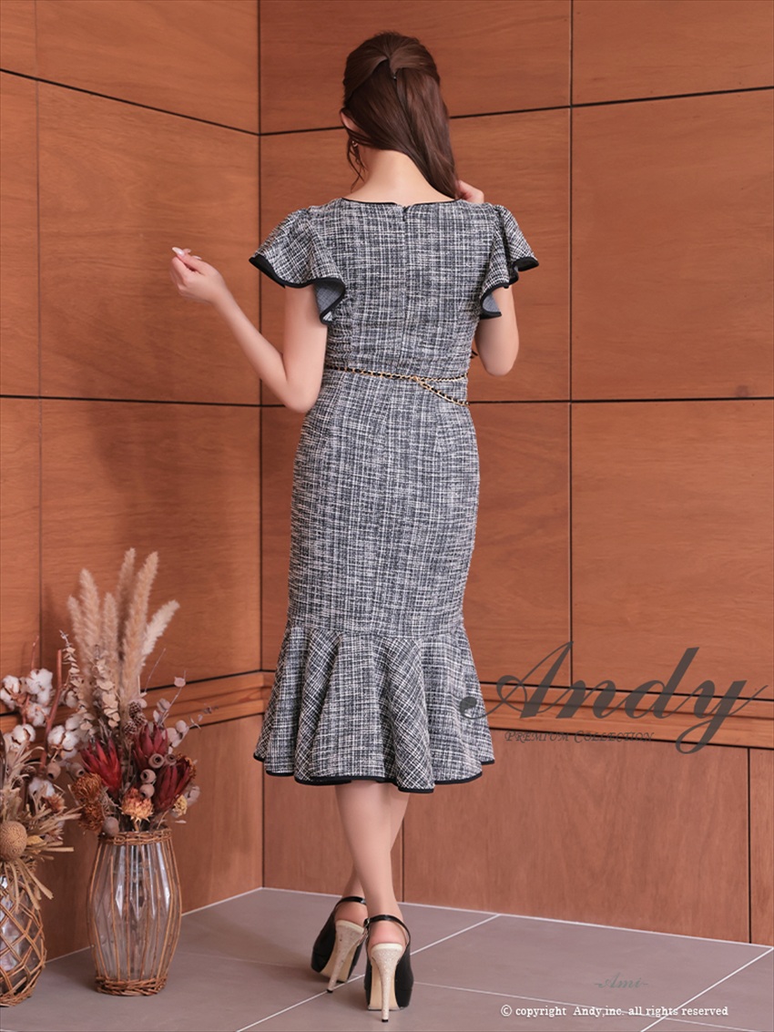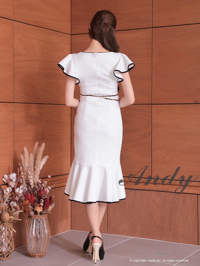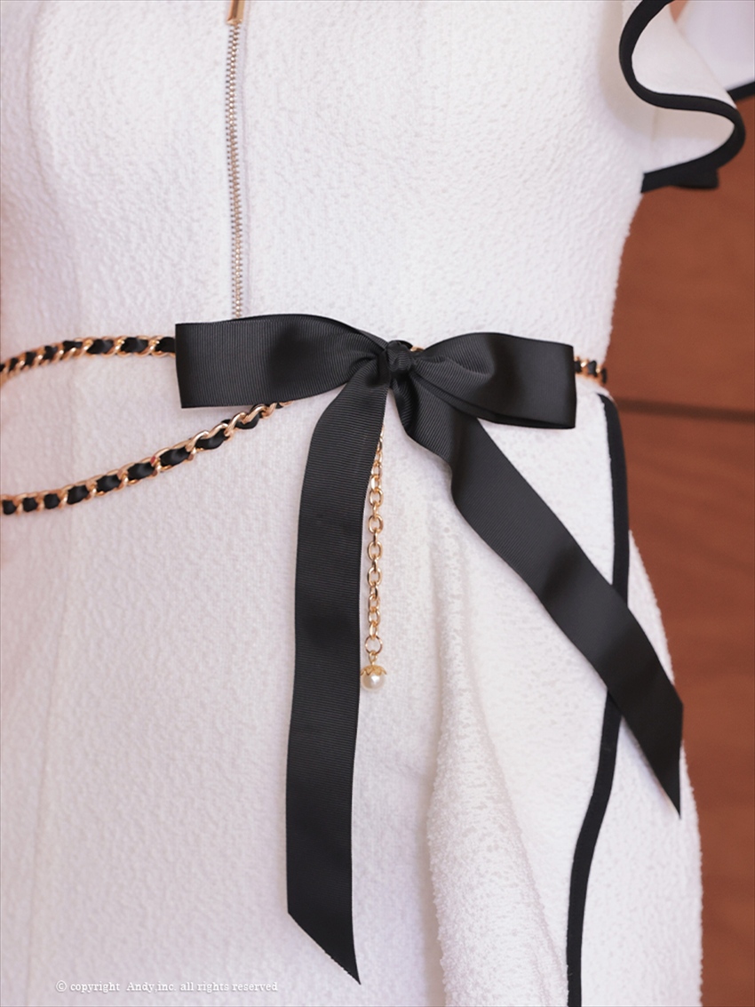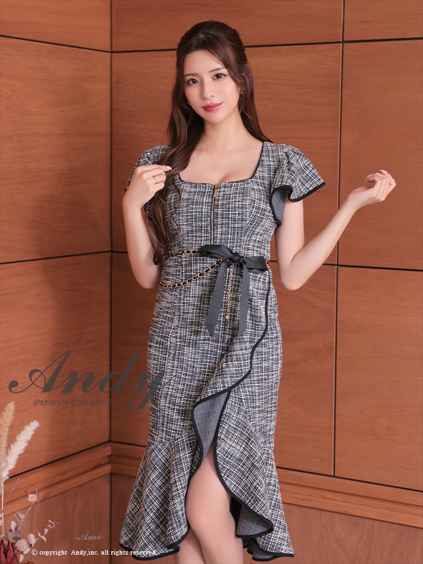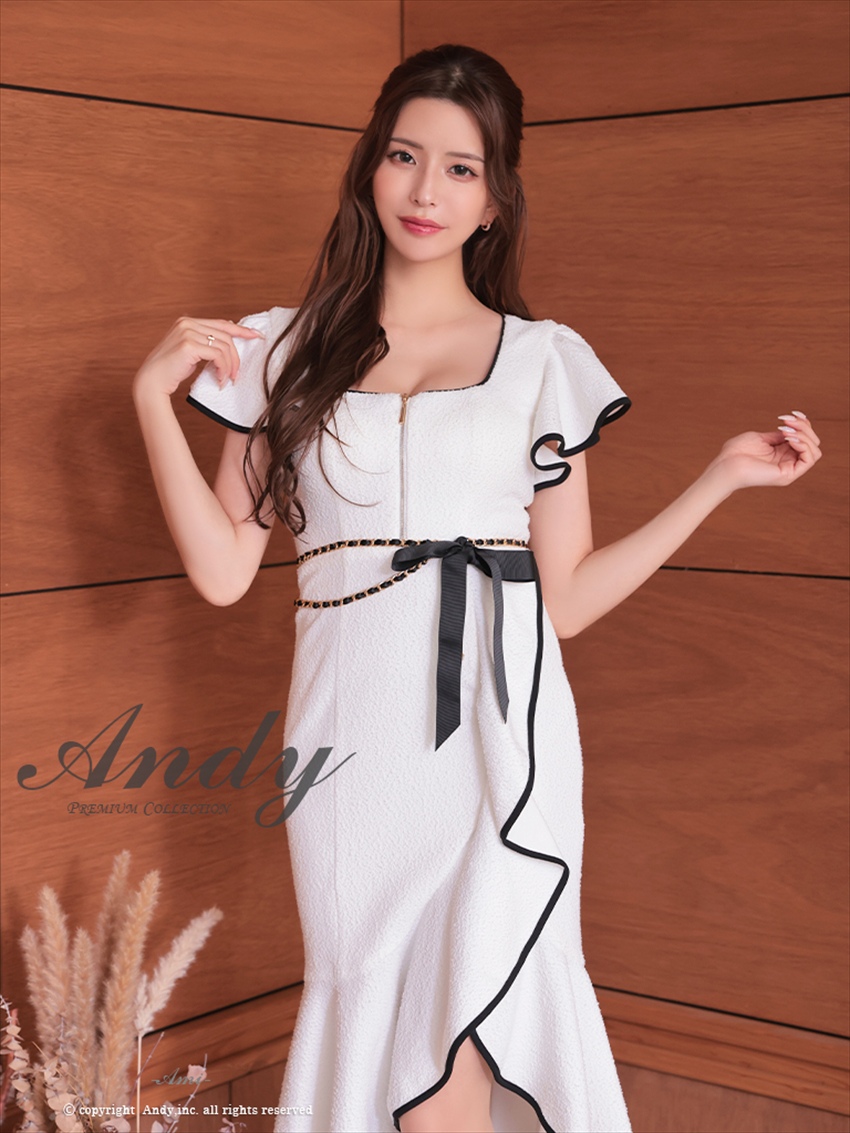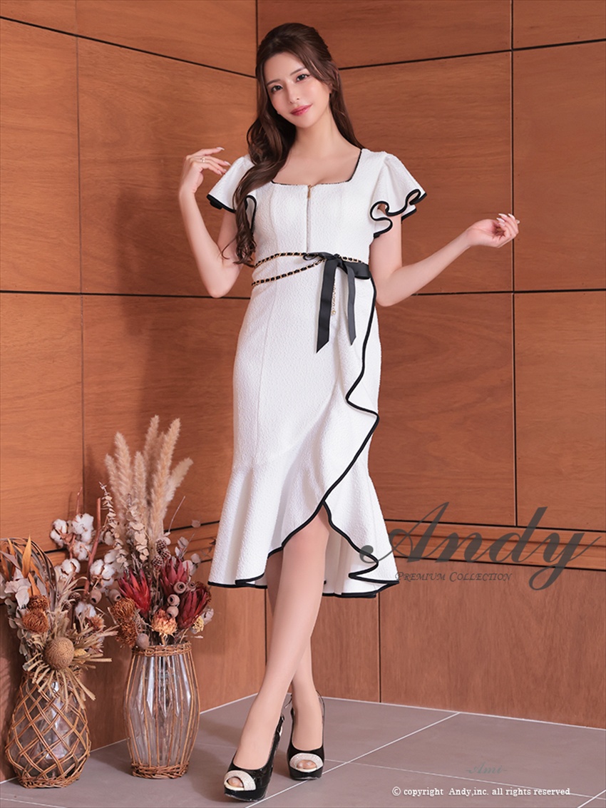 [SALE品のため返品不可&再入荷なしの現品限り][Andy/an][Andy]チェーンベルト フリル 半袖 フロントジップ アシンメトリー 膝丈 ミディアムドレス ワンピース《送料&代引き手数料無料》 [an-on2845]