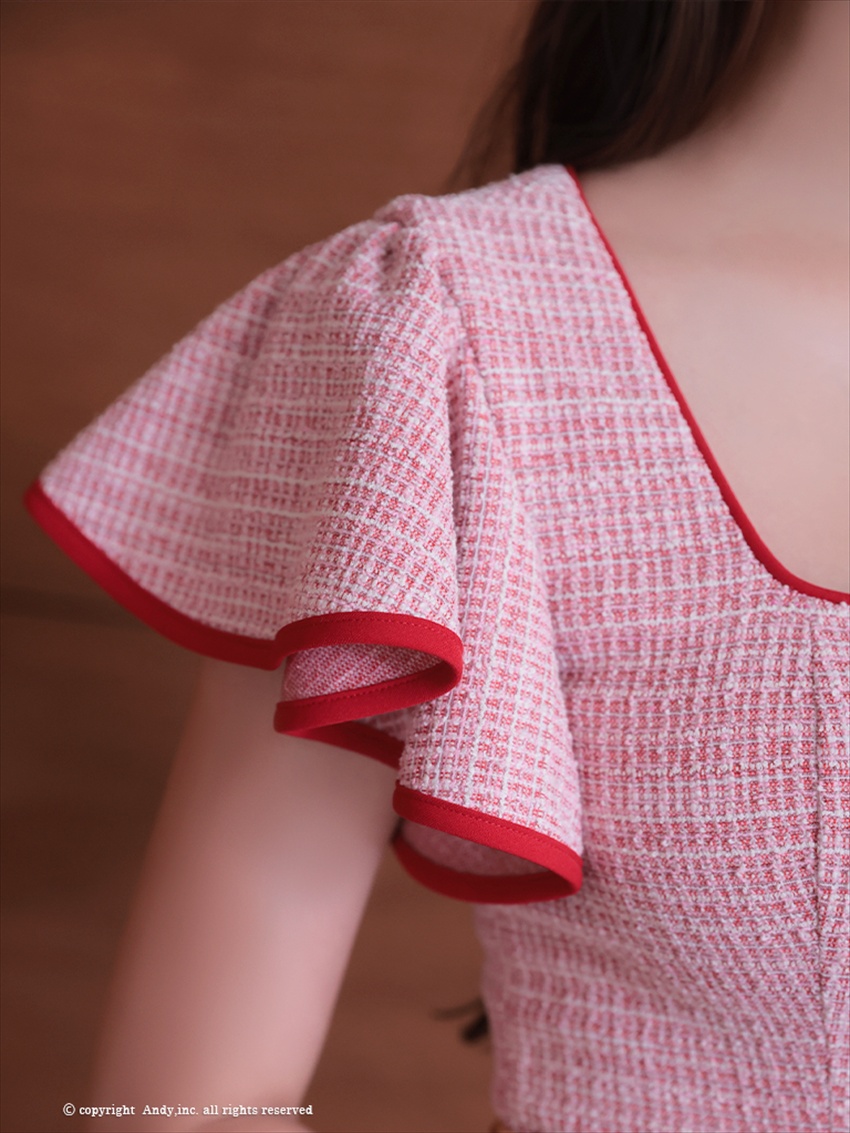 [SALE品のため返品不可&再入荷なしの現品限り][Andy/an][Andy]チェーンベルト フリル 半袖 フロントジップ アシンメトリー 膝丈 ミディアムドレス ワンピース《送料&代引き手数料無料》