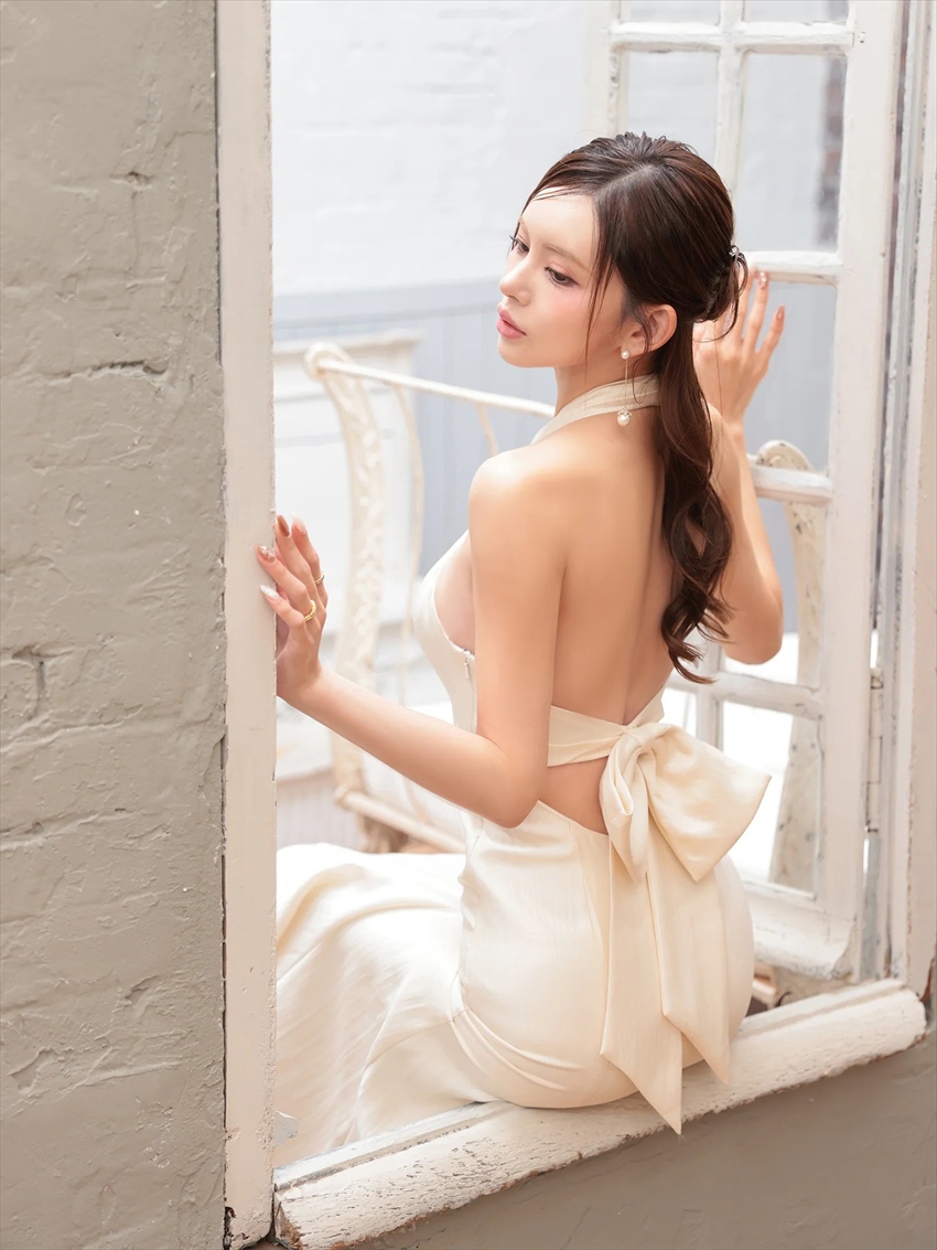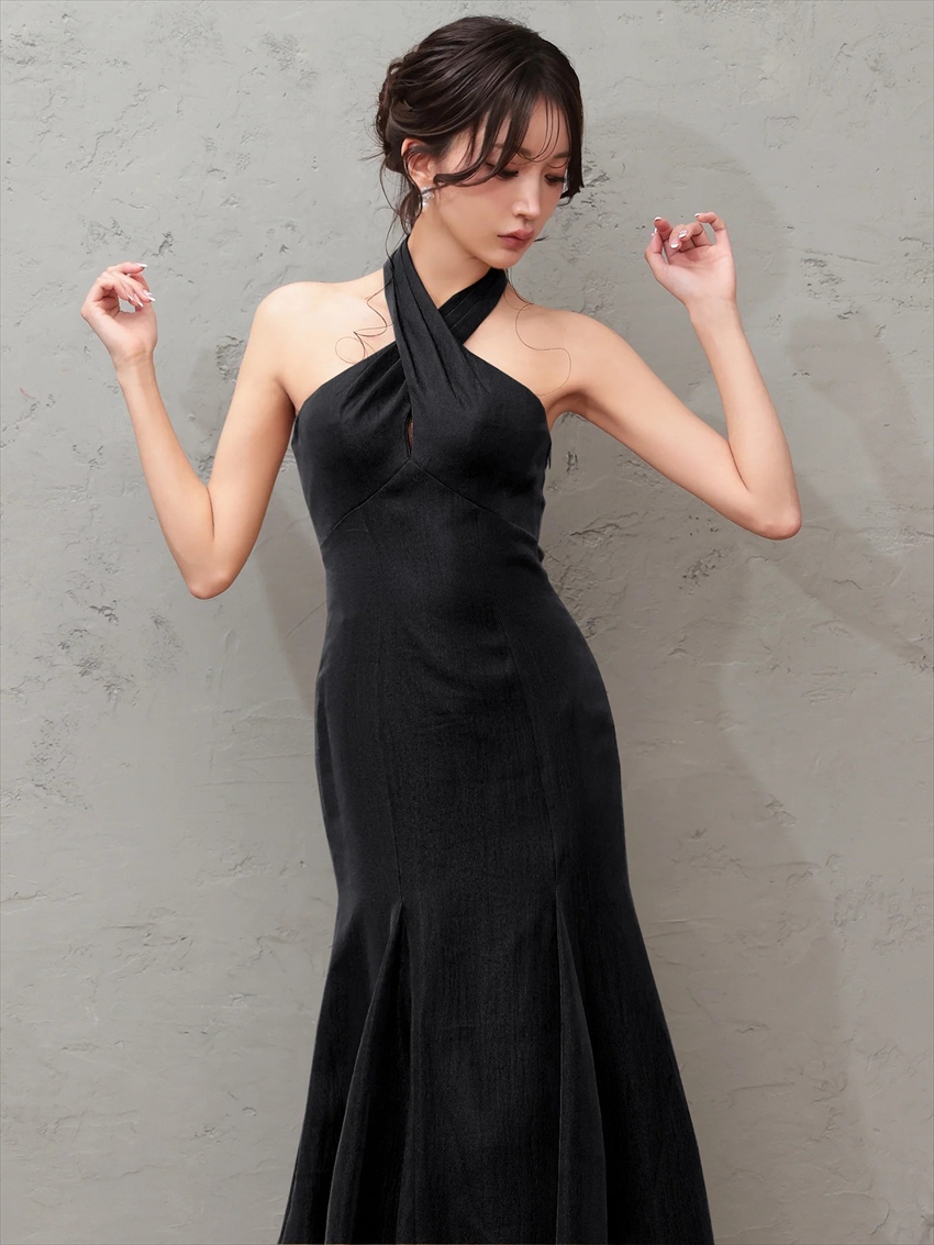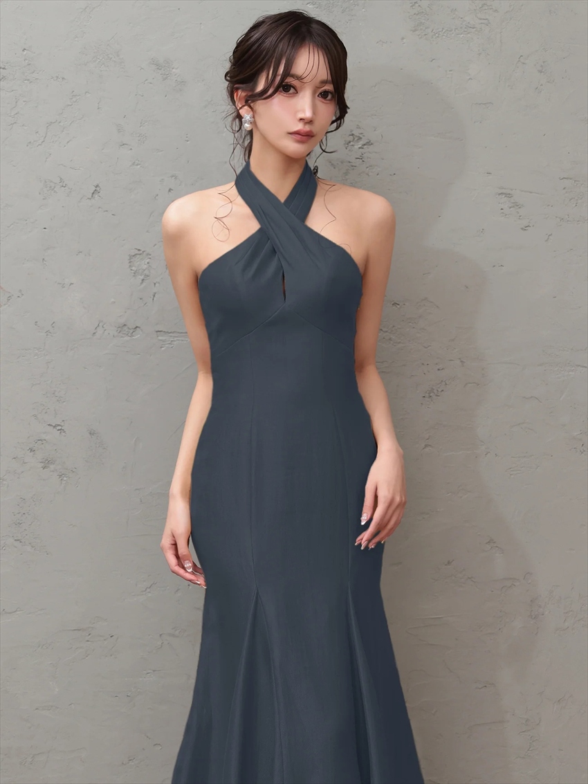 首元でクロスするホルターネックデザインが、洗練された印象を与えるロングドレス。 背中は大胆に開いたバックスタイルに、リボンディテールを添えて後ろ姿まで美しく演出。 裾にかけて自然に広がるフレアラインが、歩くたびに上品な動きをプラスします。 お仕事用はもちろんパーティーなどにもおすすめ! ※売り切れのサイズをご希望の際はお問い合わせ下さい。 ※銀座七丁目のCOLORDRESSGINZAでもご試着可能です。 |