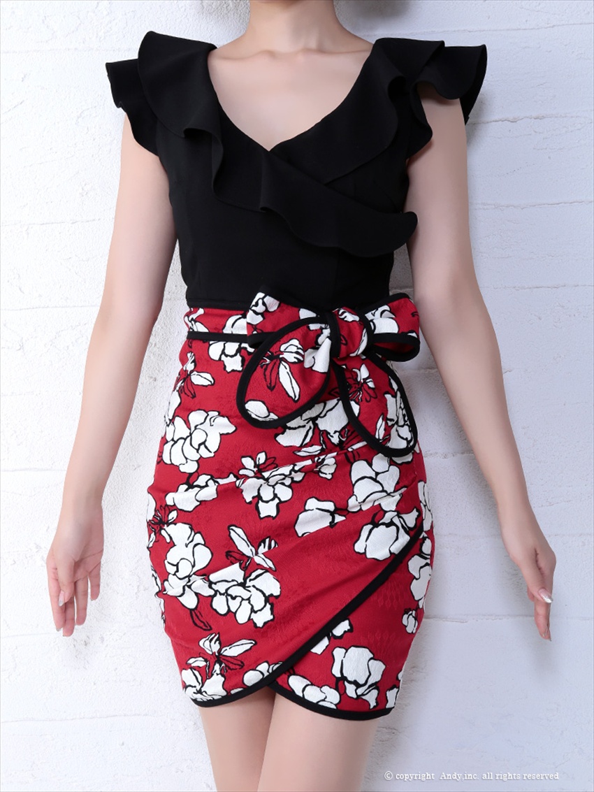 [SALE品のため返品不可&再入荷なしの現品限り][Andy/an][Andy]花柄 フリル リボン ノースリーブ タイト ミニドレス ワンピース《送料&代引き手数料無料》 [an-ok2237]