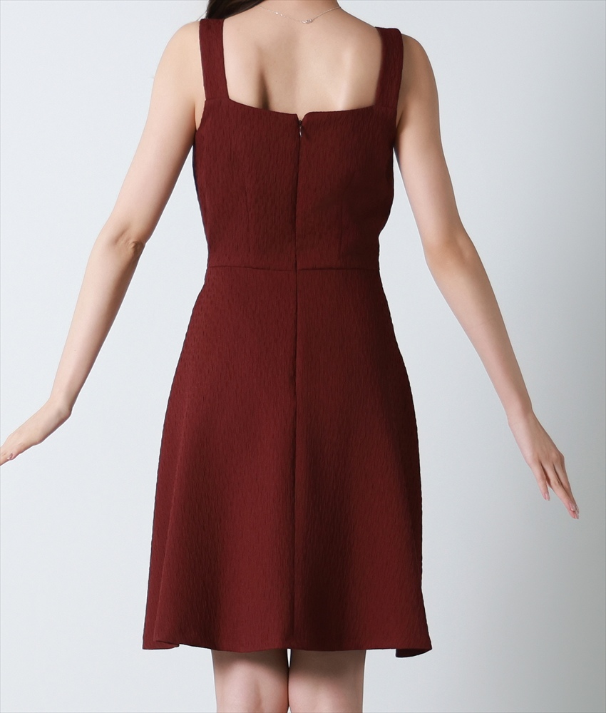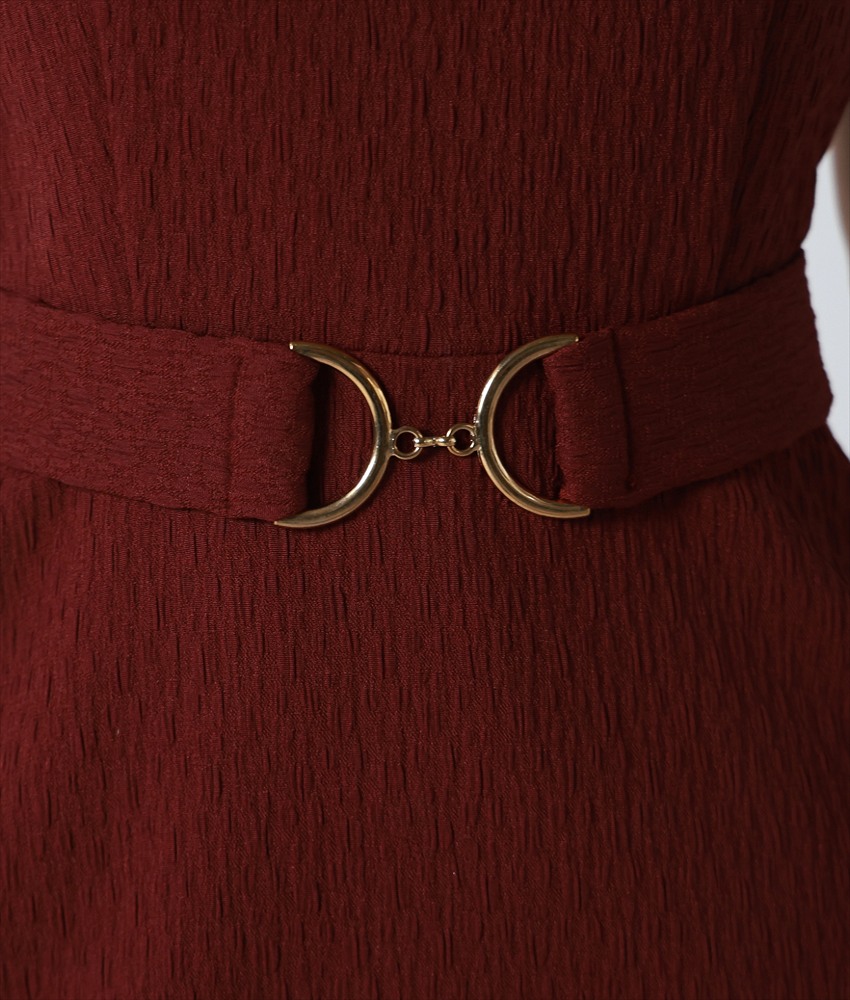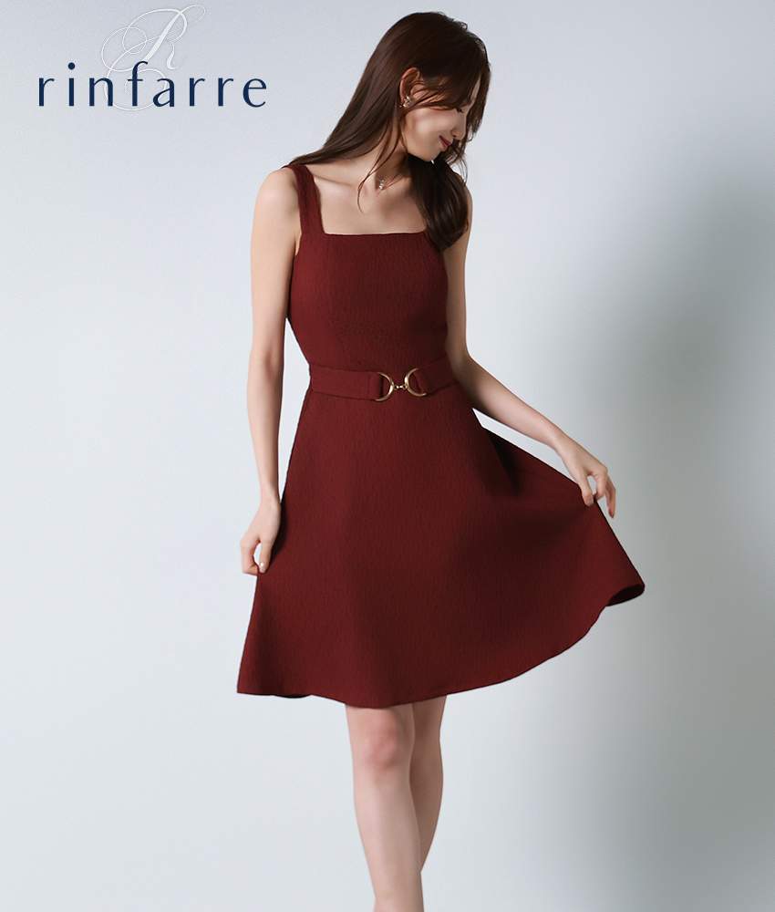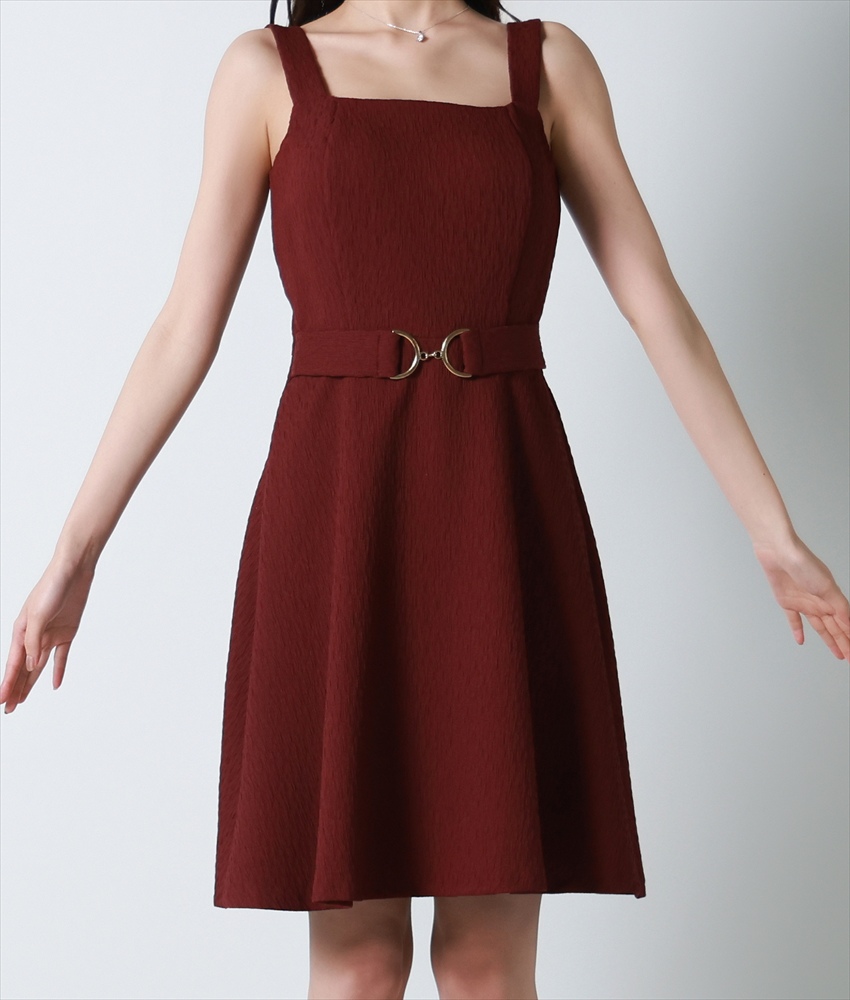 [韓国製][rinfarre]ノースリーブ・ワインレッド・ベルト・Aライン・ミディアムドレス・ワンピース[黒木麗奈着用][送料無料] [cd-k06260rd]