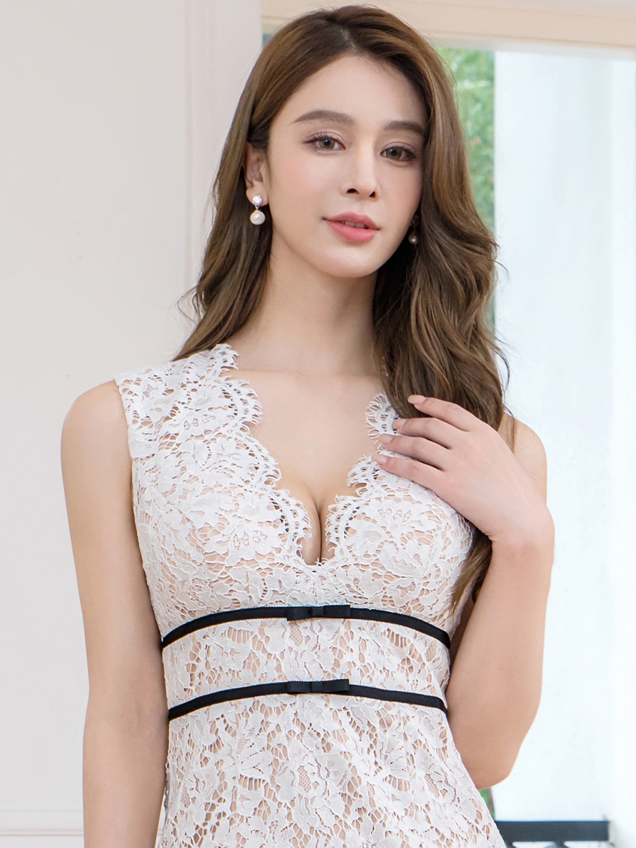 [ XS-Lサイズ / 1カラー ][ERUKEI]総レース・シアー・ウエストマーク・ノースリーブ・インナーミニ・バックスリット・タイト・ロングドレス[送料無料] [lk-e25020]