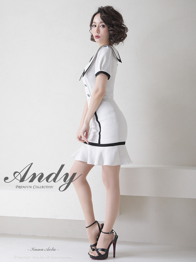 [ S-Mサイズ / 3カラー ][SALE品のため返品不可&再入荷なしの現品限り][Andy/an][an]セーラーカラー・パイピング・ボタン・半袖・タイト・裾フリル・膝丈・ミニドレス・ワンピース《送料&代引き手数料無料》 [an-on2698]