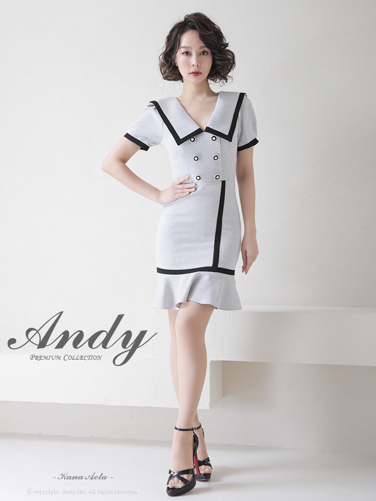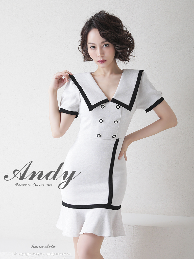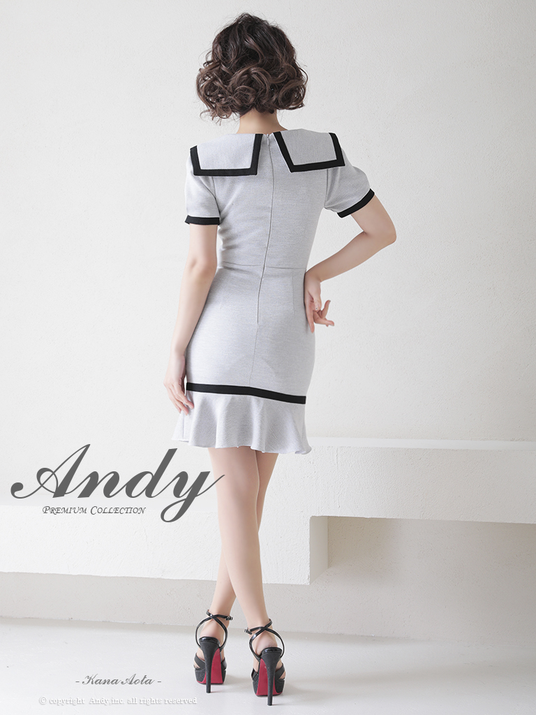 [ S-Mサイズ / 3カラー ][SALE品のため返品不可&再入荷なしの現品限り][Andy/an][an]セーラーカラー・パイピング・ボタン・半袖・タイト・裾フリル・膝丈・ミニドレス・ワンピース《送料&代引き手数料無料》