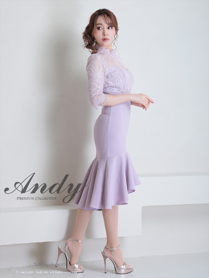 [SALE品のため返品不可&再入荷なしの現品限り][ S-Mサイズ / 3カラー ][Andy/an][Andy]マーメイド レース・デコルテシアー・七分袖・フィッシュテール・ミディアムドレス《送料&代引き手数料無料》 [an-on2734]