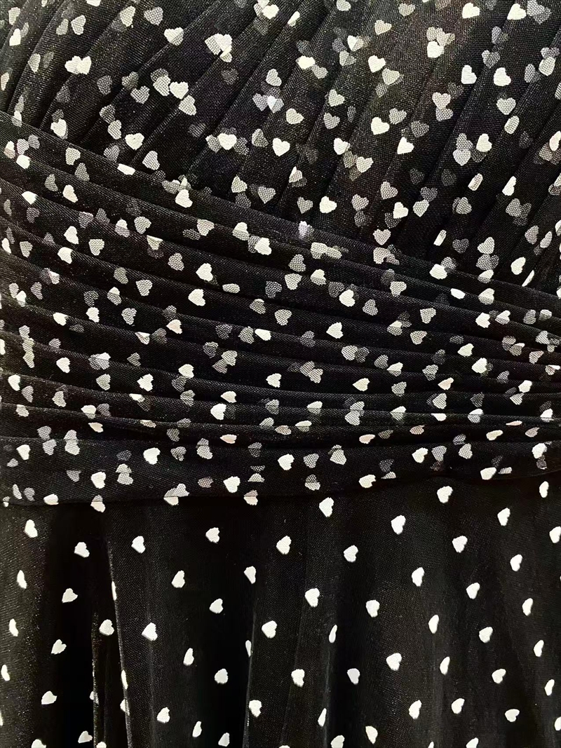 [ XS-Lサイズ / 2カラー ][ERUKEI/SETTAN]ワンショルダー・ハートドット・チュールレース・ハイウエスト・Aライン・ロングドレス[送料無料]
