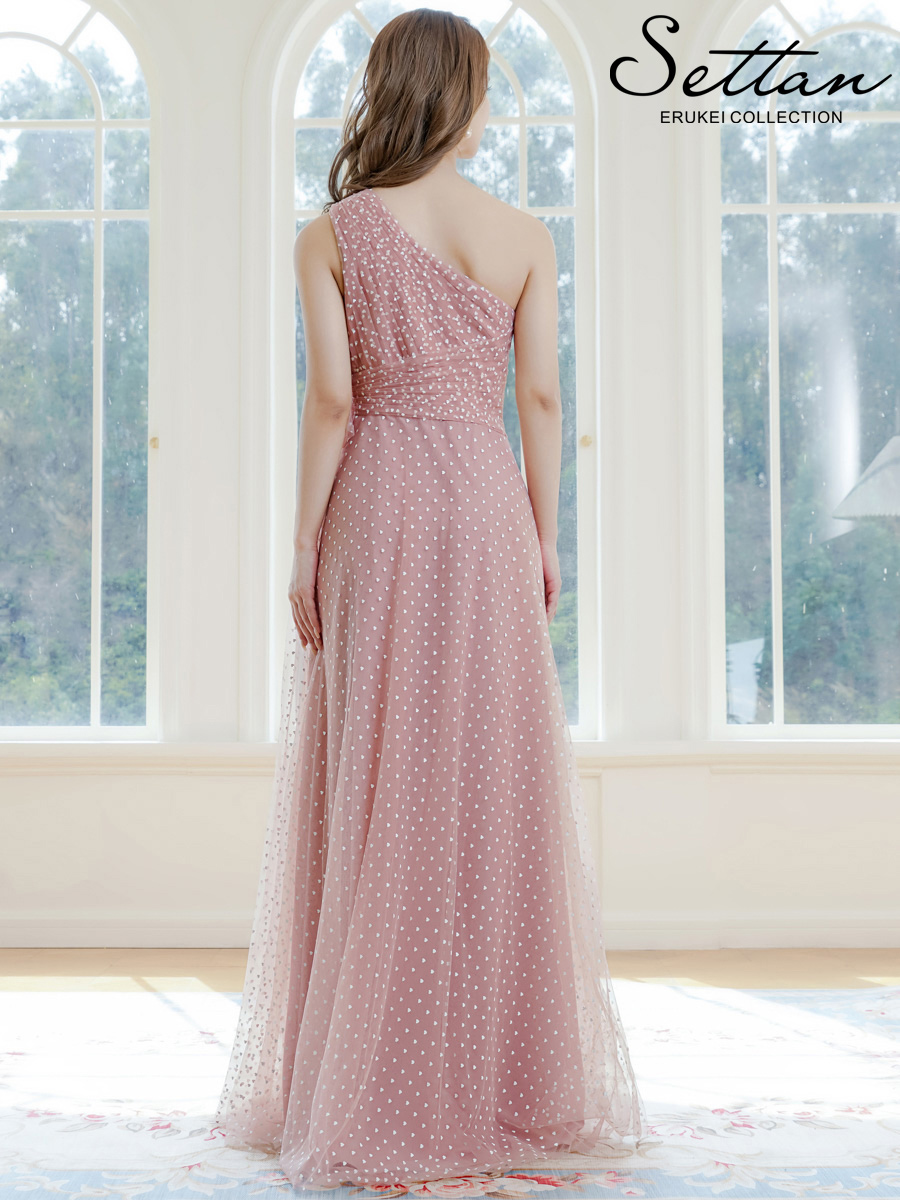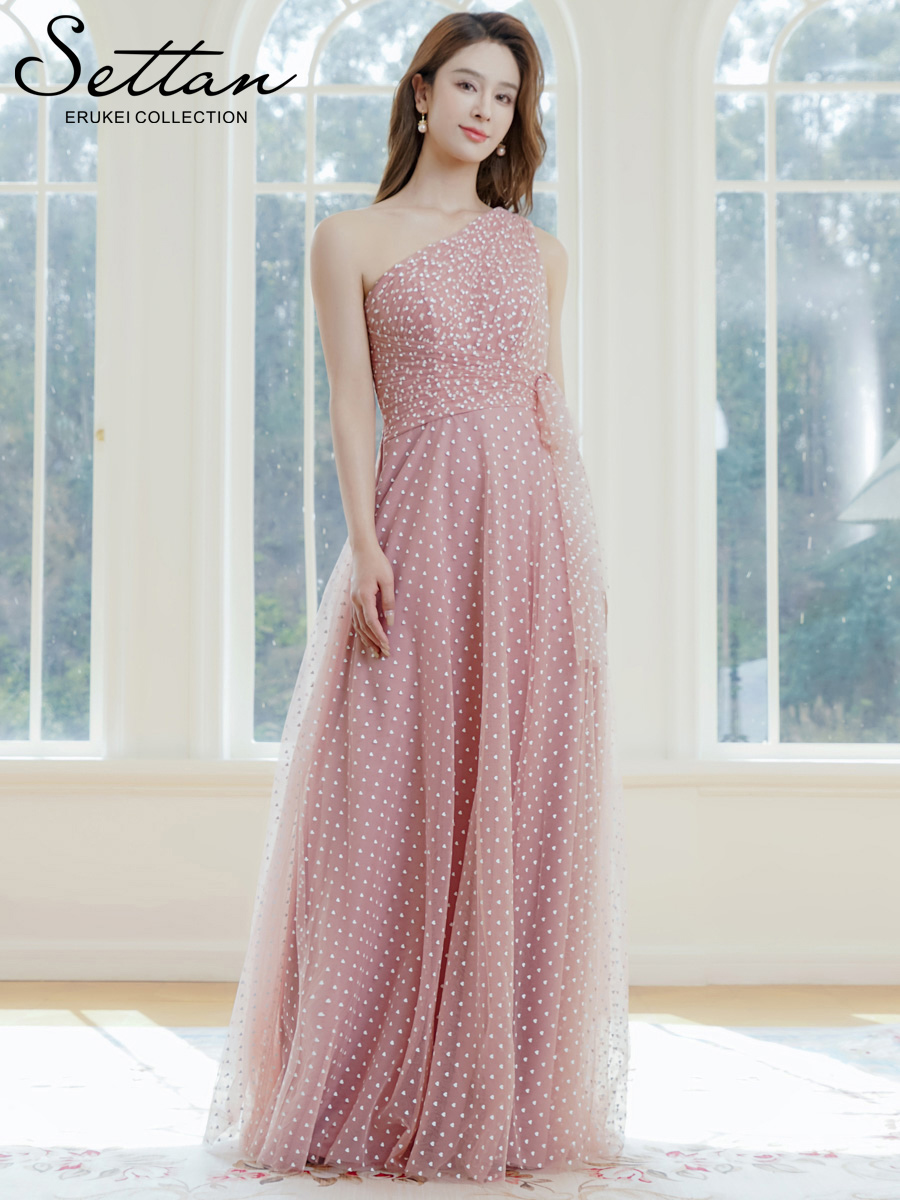 [ XS-Lサイズ / 2カラー ][ERUKEI/SETTAN]ワンショルダー・ハートドット・チュールレース・ハイウエスト・Aライン・ロングドレス[送料無料] [lk-s37115]