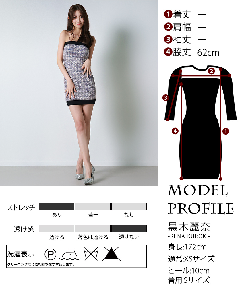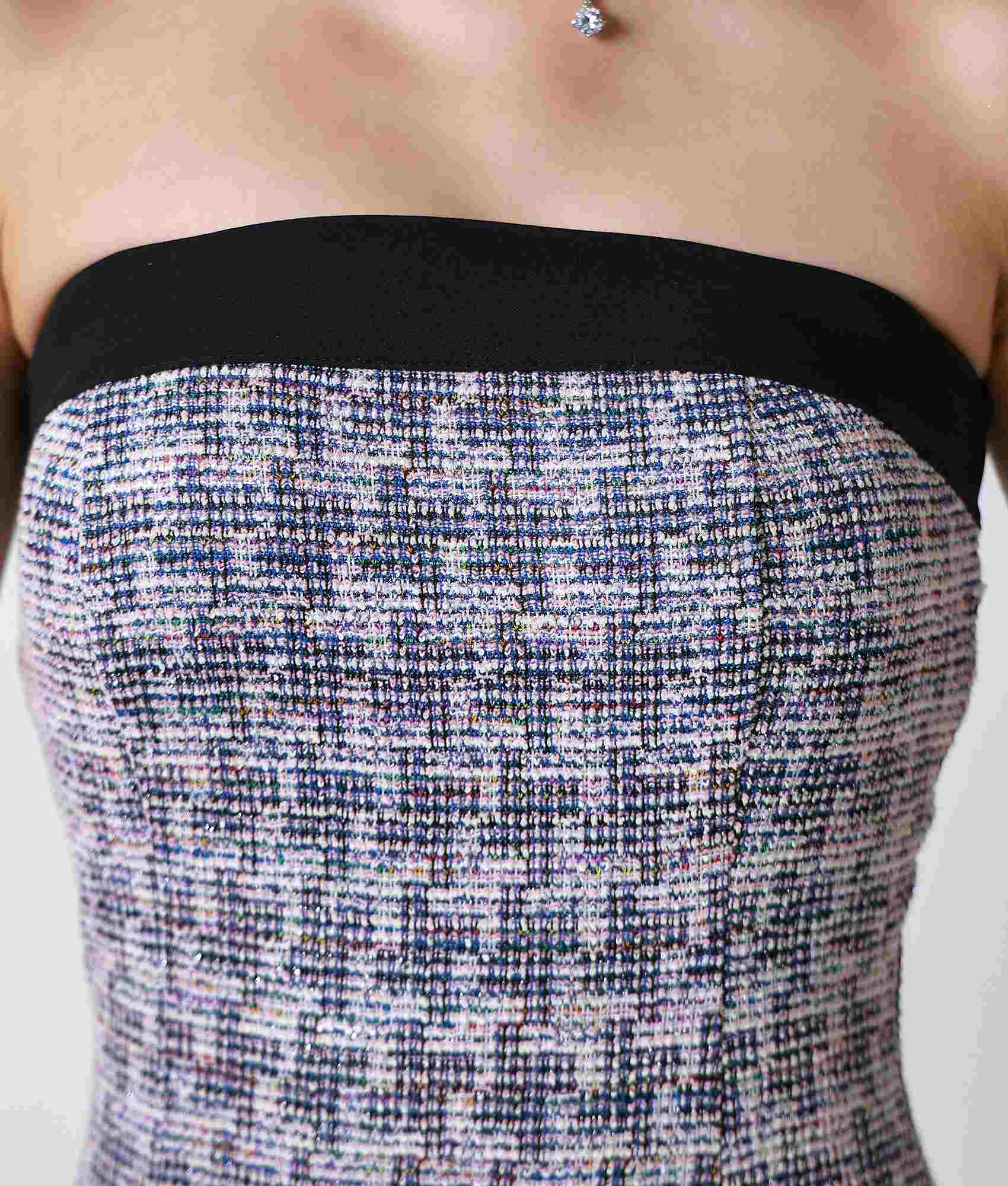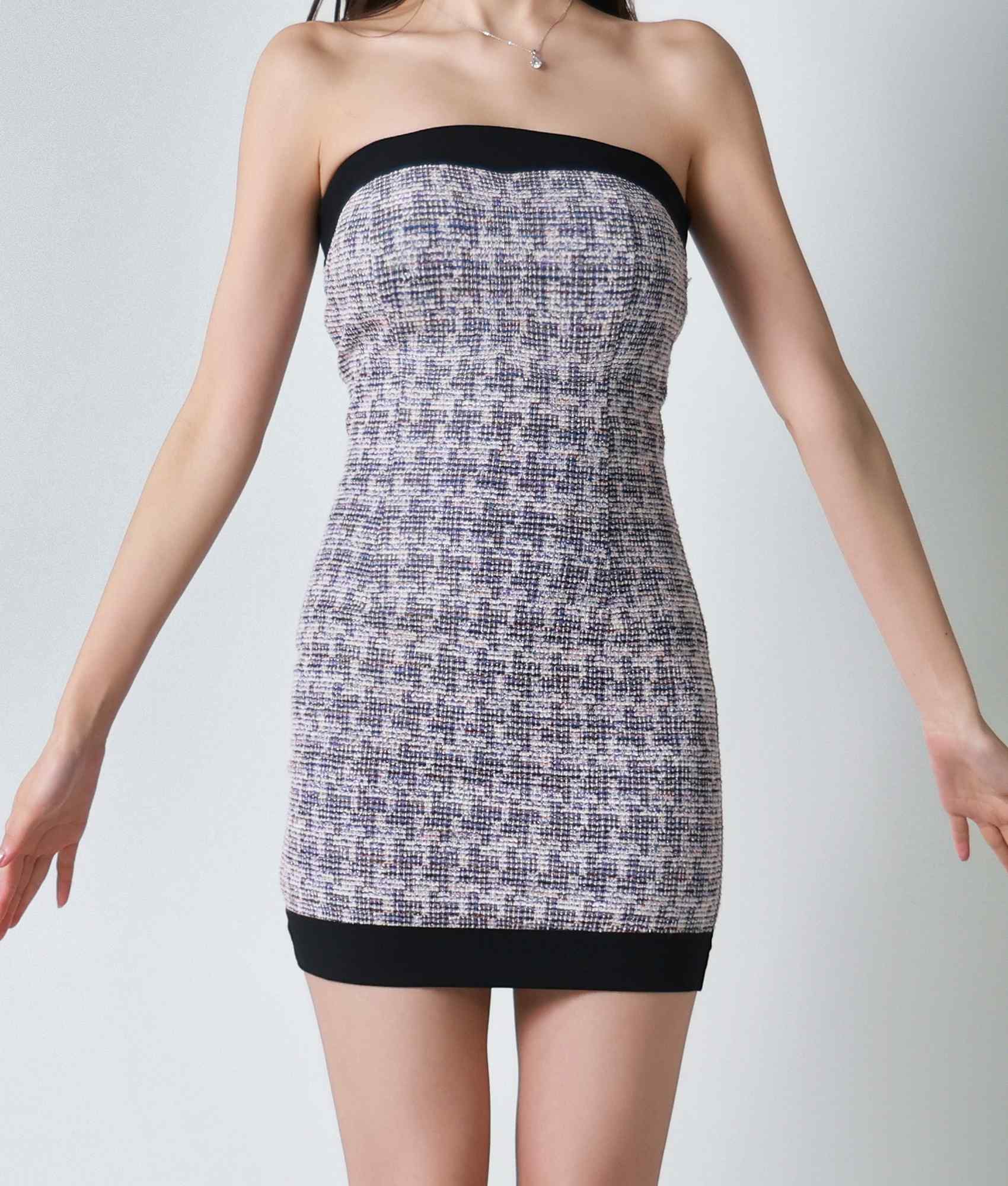 [韓国製][ S-Lサイズ / 2カラー ][rinfarre]ツイード・ミックスツイード・ベアトップ・ミニ丈・タイトミニ・ドレス[黒木麗奈ちゃん着用][送料無料]
