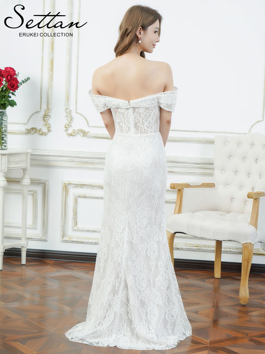 [ XS-Lサイズ / 2カラー][ERUKEI/SETTAN]ホワイト・レッド・総レース・シアー・オフショルダー・コルセット風・スリット・マーメイド・ロングドレス[送料無料] [lk-s37219]