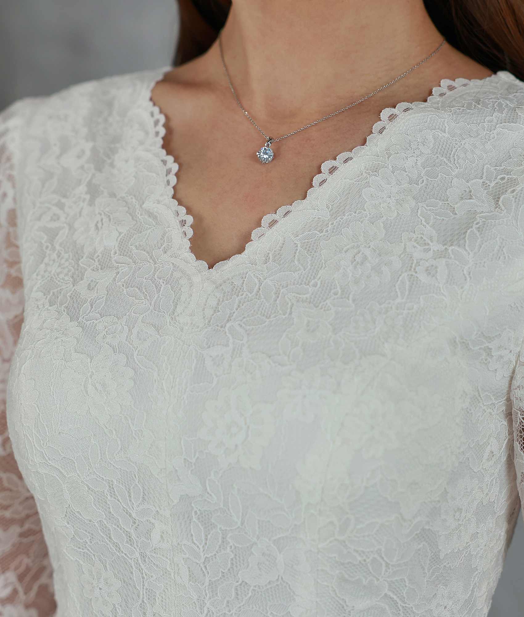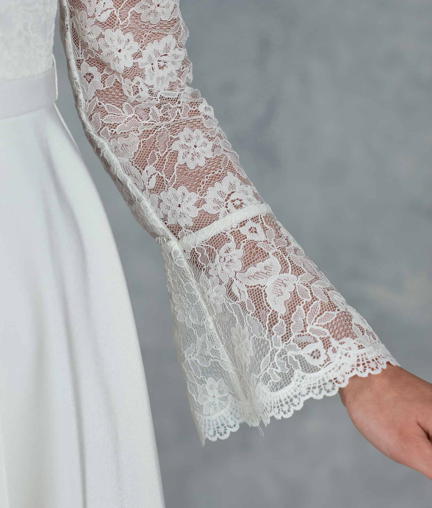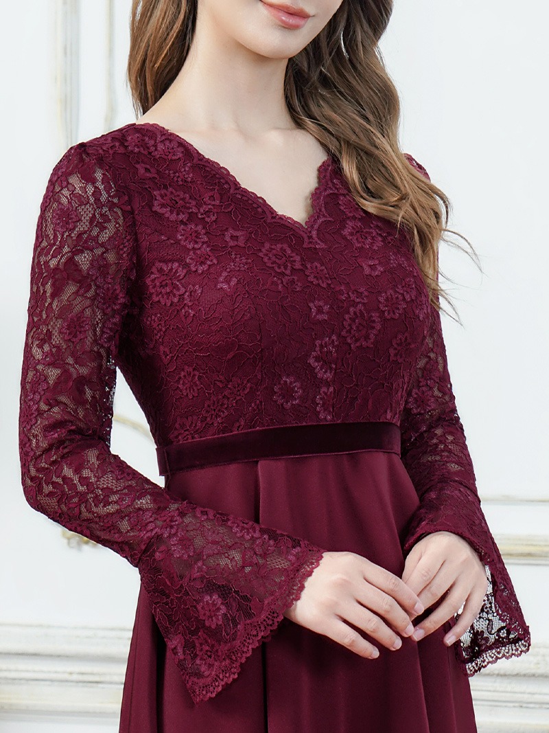 [ XS-Lサイズ / 2カラー][ERUKEI]ワンカラー・レース・サテン・Vネック・長袖・ベルスリーブ・ミディアムドレス・ワンピース[薗田杏奈着用][送料無料]