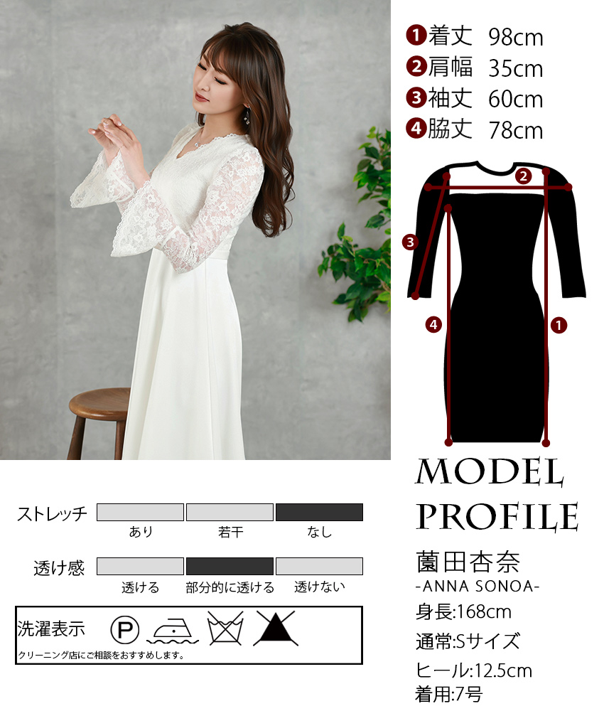 | モデル | 薗田杏奈ちゃん(168cm)/7号(Sサイズ)着用 |