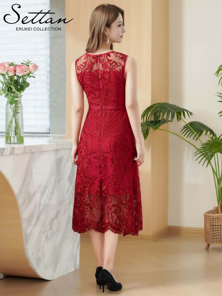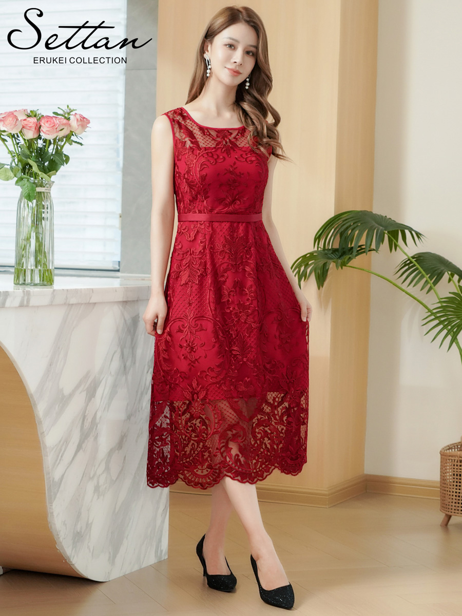 [ XS-Lサイズ / 2カラー][ERUKEI/SETTAN]レース・シアー・スカラップノースリーブ・Aライン・ミディアムドレス・ワンピース[送料無料] [lk-s25232]
