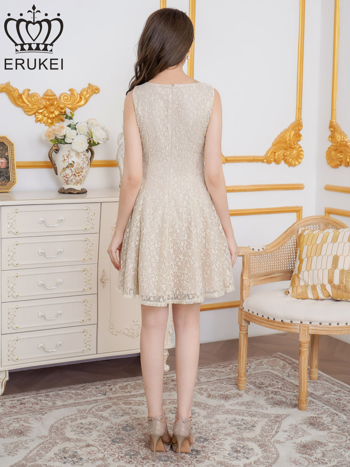 [ XS-Lサイズ / 1カラー][ERUKEI]総レース・金糸・レザー・レースアップ・ノースリーブ・切替・Aライン・ミニドレス・ワンピース[送料無料] [lk-e25124]