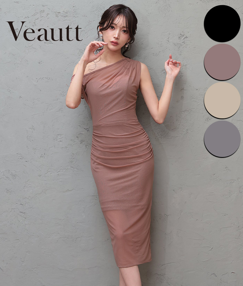 [ XS-Mサイズ / 4カラー ][Veautt]ワンショルダー・シアー・メッシュ・スリット・タイト・ミディアムドレス《送料&代引き手数料無料》 [ar-vt082604]