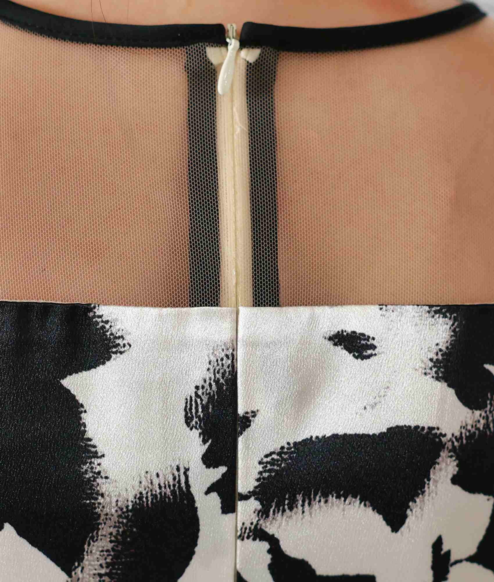 [ XS-Lサイズ / 1カラー][ERUKEI]モノトーン・リーフ柄・花柄・レースネック・Aライン・ノースリーブ・ロングドレス・ワンピース[薗田杏奈着用][送料無料] [lk-s25345]
