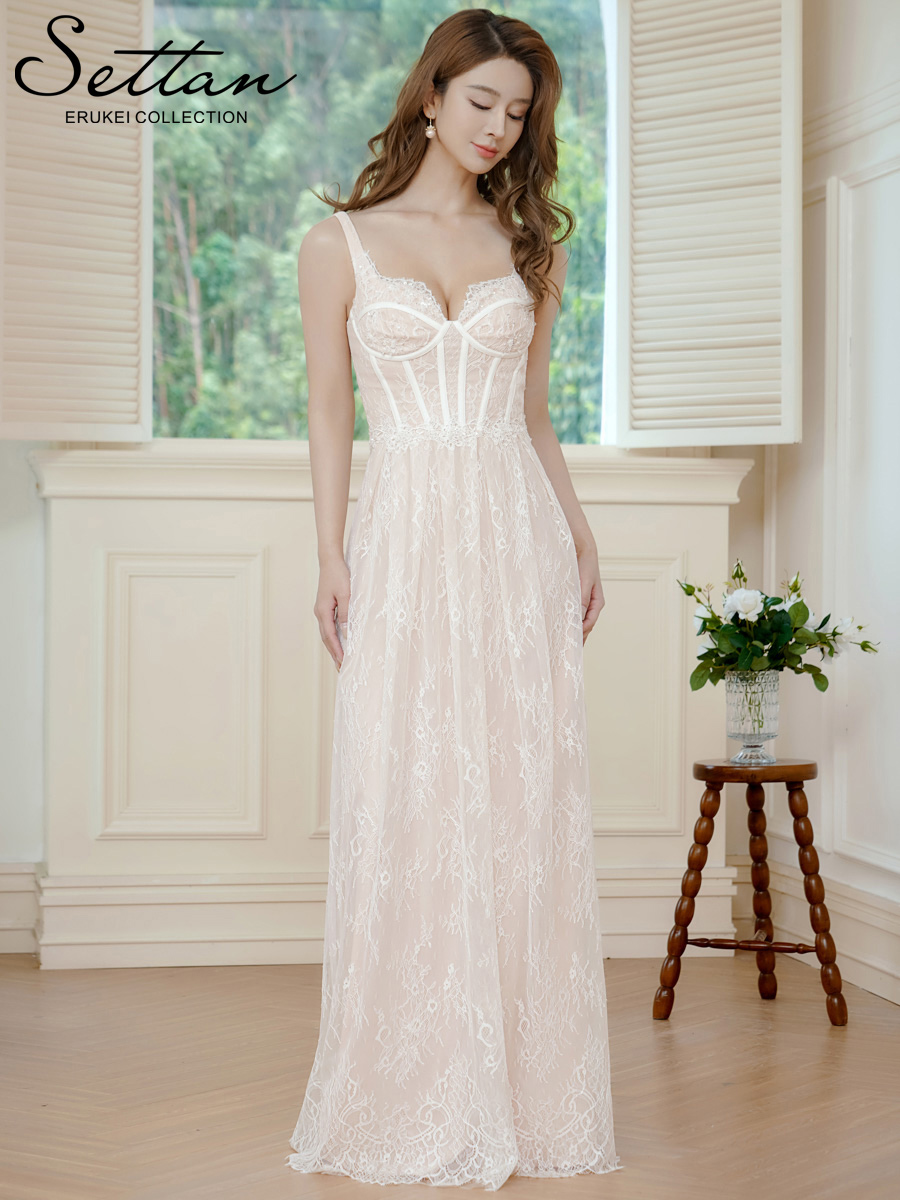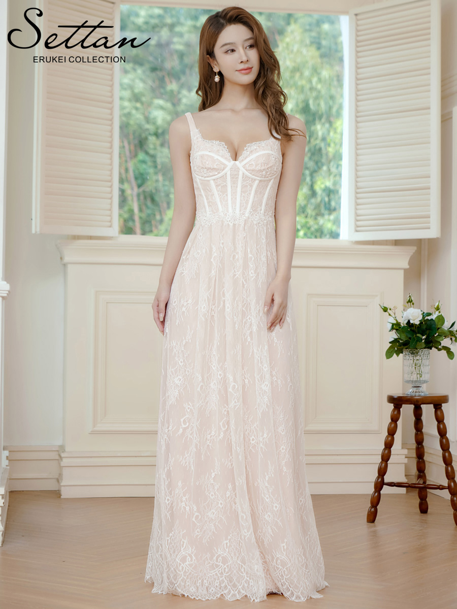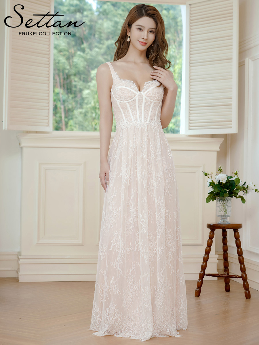 [ XS-Lサイズ / 1カラー][ERUKEI/SETTAN]総レース・コルセット風・ビーズ スパンコール刺繡・エレガント・Aライン・ロングドレス[送料無料] [lk-s37110]
