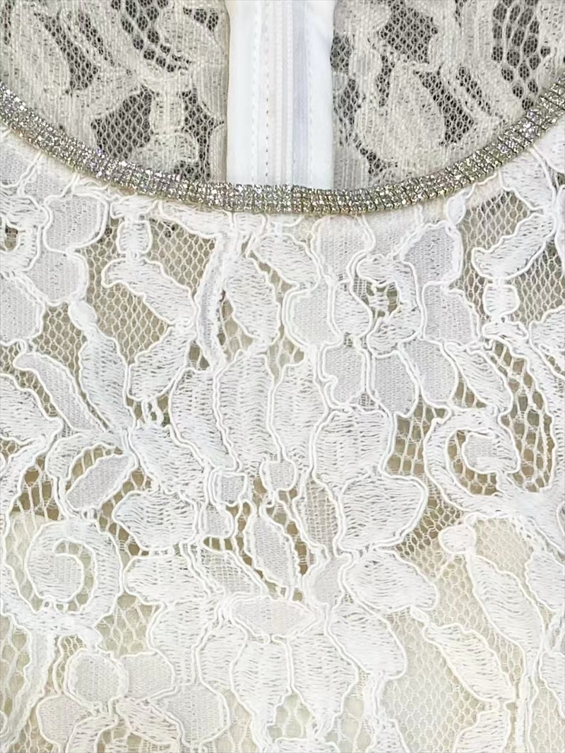 [ XS-Lサイズ / 2カラー][ERUKEI]総レース・ネックビジュー・ラインストーン・ノースリーブ・スリット・マーメイド・ロングドレス[送料無料]