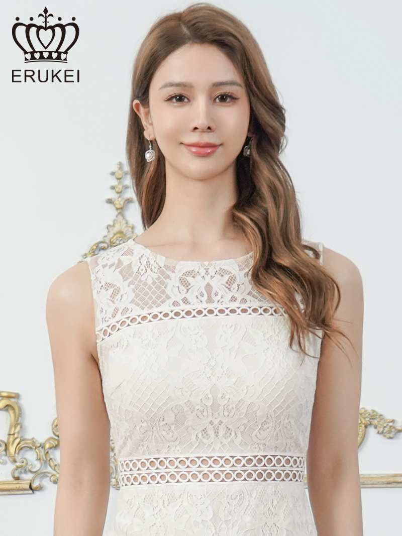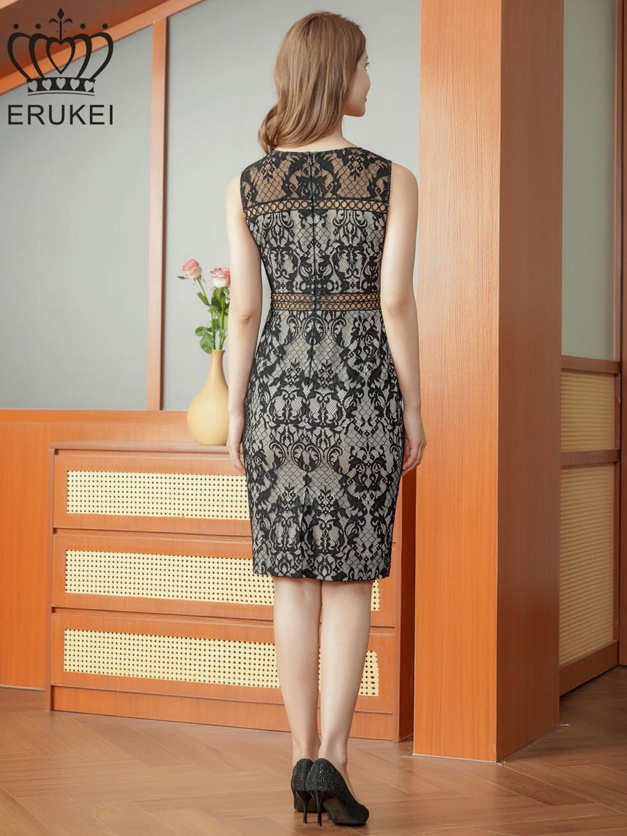 [ERUKEI]ケミカルレース・総レース・ノースリーブ・タイト・膝丈・ミディアムドレス・ワンピース[れお着用]《送料&代引き手数料無料》 [lk-c24002]