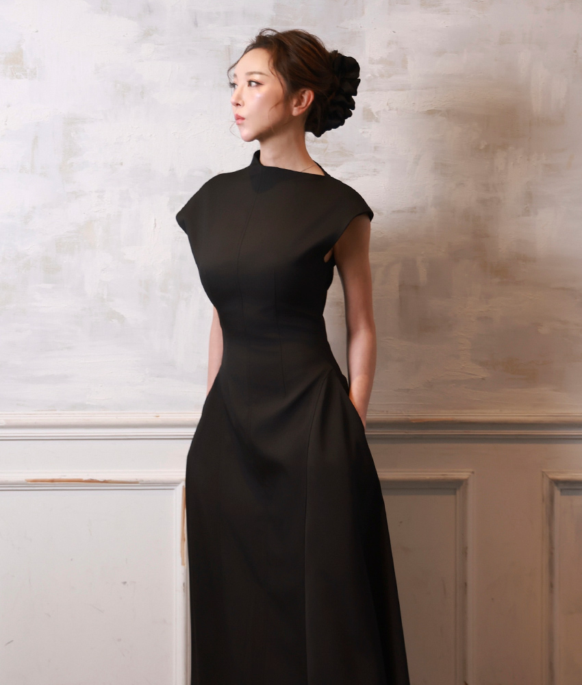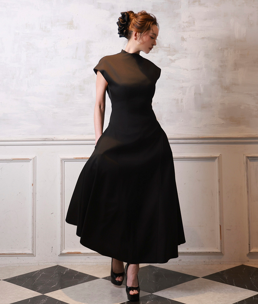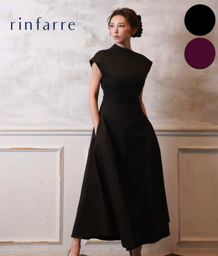 [ S-Mサイズ / 2カラー ][rinfarre]キャップスリーブ・ハイネック・ポケット・フレア・ミモレ丈・Aライン・ロングドレス・ワンピース[薗田杏奈着用][送料無料]mybk