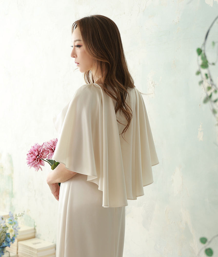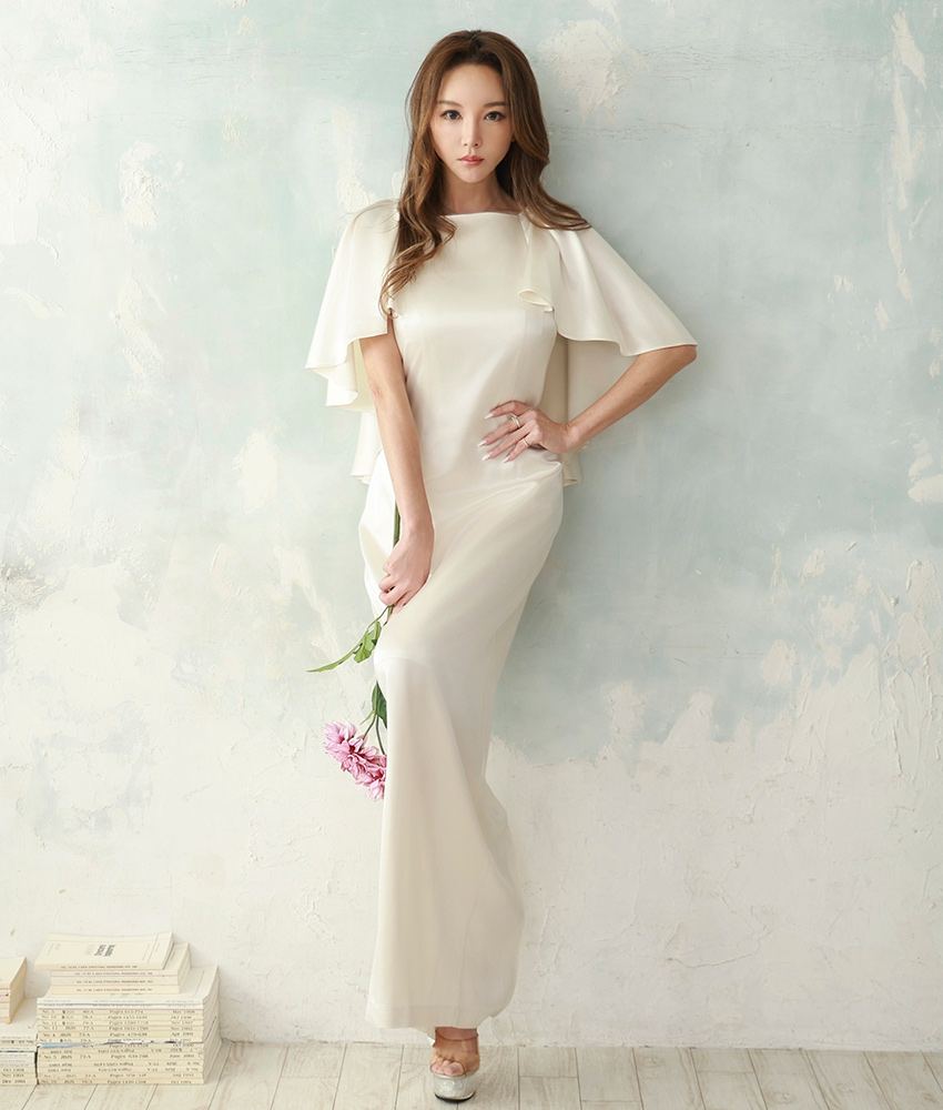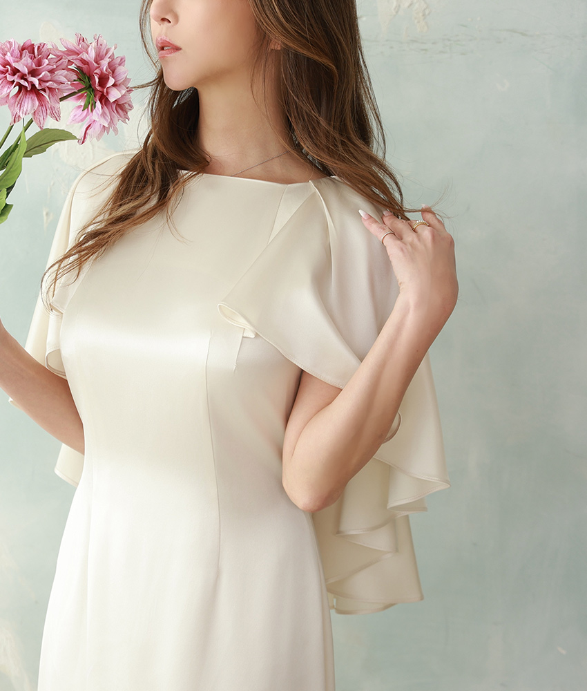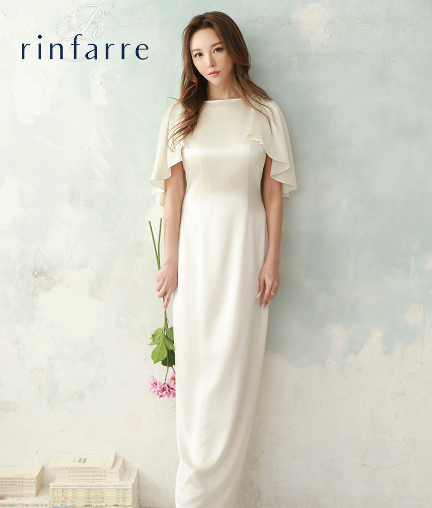 [ S-Mサイズ / 1カラー ][rinfarre]アイボリー・サテン・フレアスリーブ・ケープ・タイト・ロングドレス・ワンピース[山崎みどり着用][送料無料]myiv