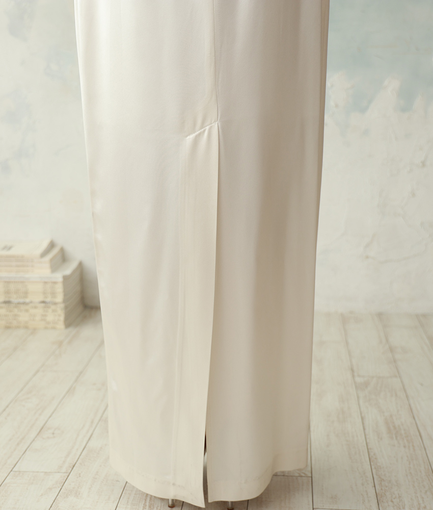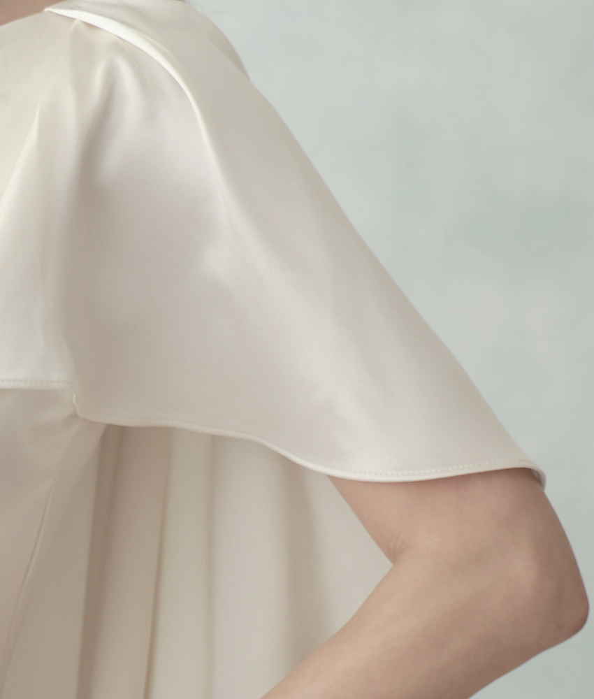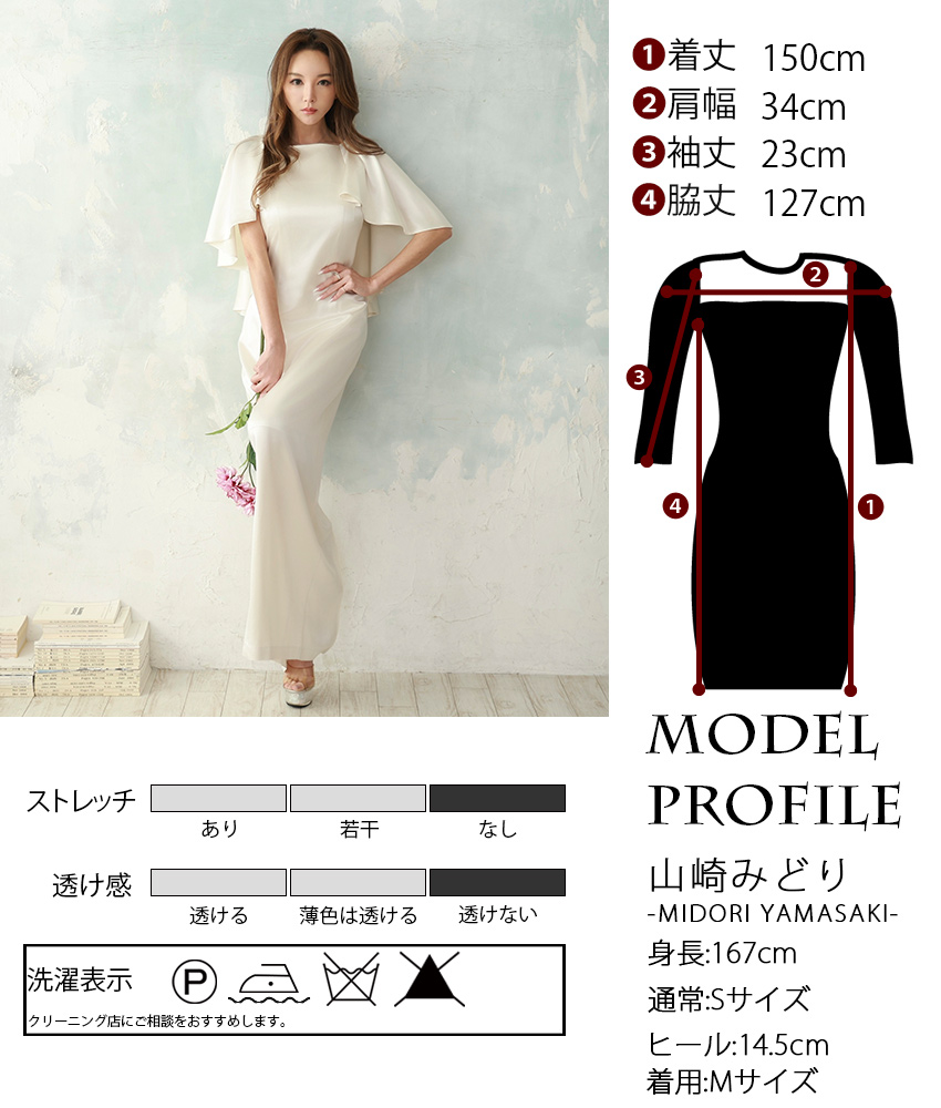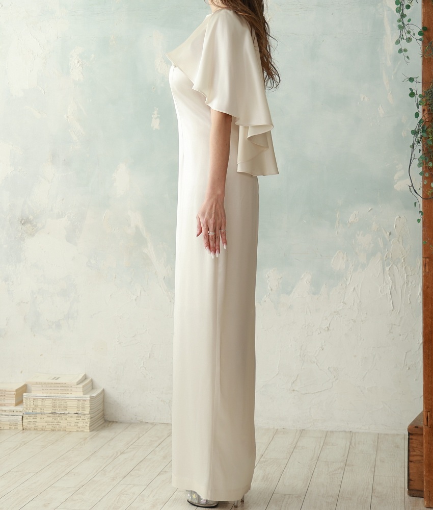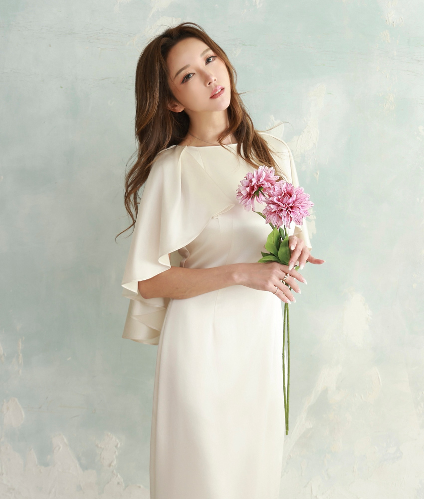 [ S-Mサイズ / 1カラー ][rinfarre]アイボリー・サテン・フレアスリーブ・ケープ・タイト・ロングドレス・ワンピース[山崎みどり着用][送料無料]myiv