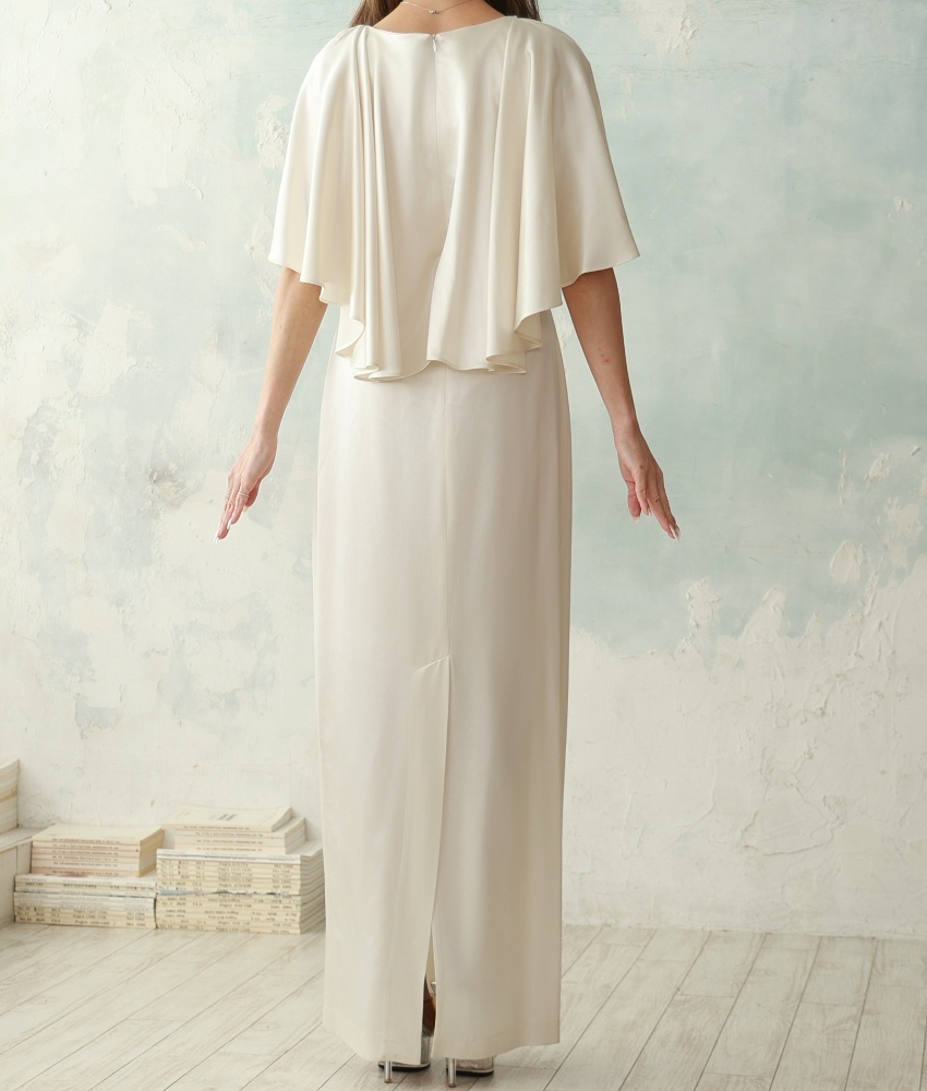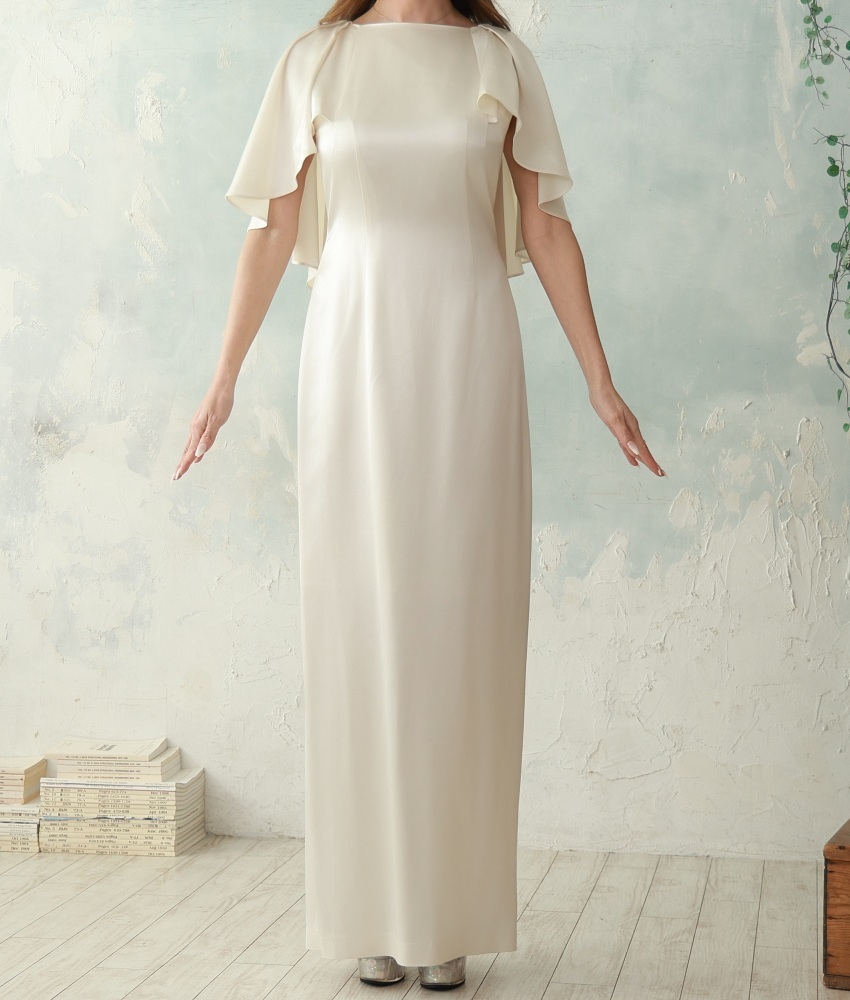 [ S-Mサイズ / 1カラー ][rinfarre]アイボリー・サテン・フレアスリーブ・ケープ・タイト・ロングドレス・ワンピース[山崎みどり着用][送料無料]myiv [cd-k06267vn]