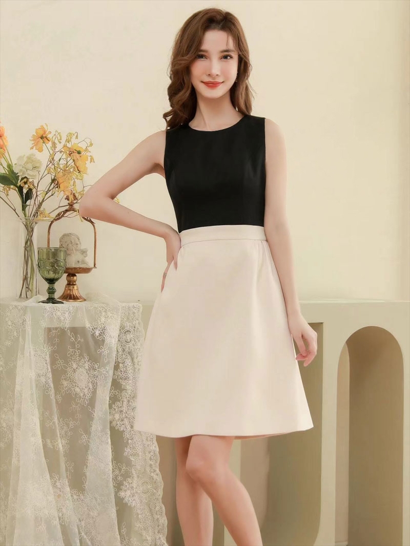 [ XS-Lサイズ / 1カラー][ERUKEI/SETTAN]ブラック×ホワイト・バックリボン・リボン・バイカラー・ノースリーブ・ミニドレス・ワンピース[送料無料] [lk-s33152]