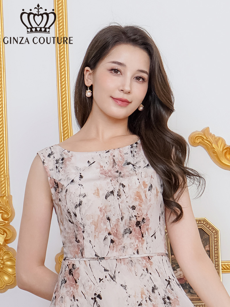 [ XS-Lサイズ / 1カラー][ERUKEI/GINZA COUTURE]シフォン・プリント・ノースリーブ・切替・Aライン・ミディアムドレス・ワンピース[送料無料] [lk-c25215]