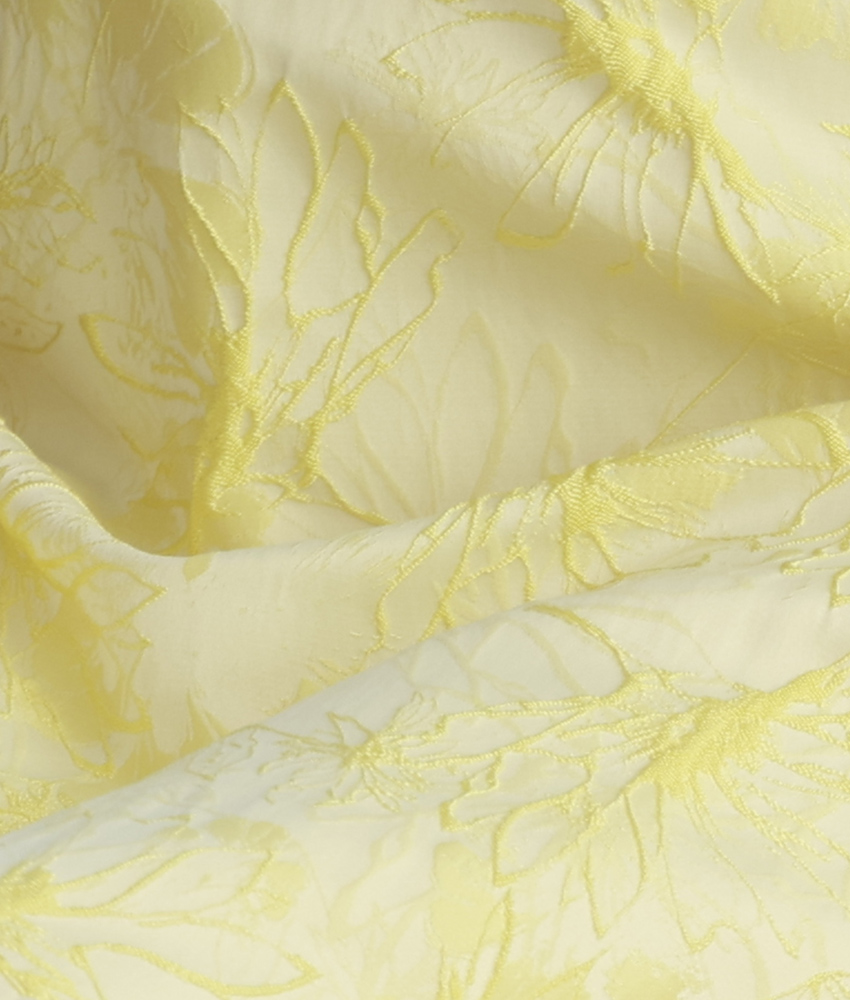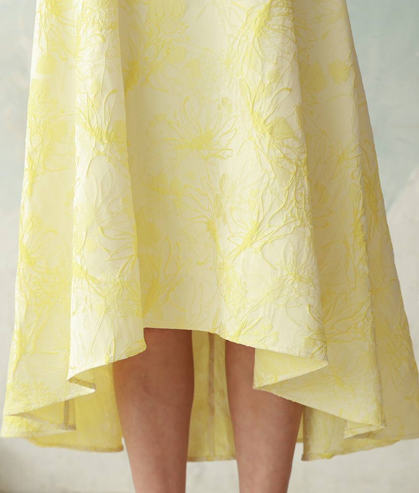 [ERUKEI/GINZA COUTURE]イエロー・ホワイト・ブルー・花柄・ジャガード・切り替え・Aライン・半袖・ミディアムドレス・ワンピース[送料無料] [lk-c22134]