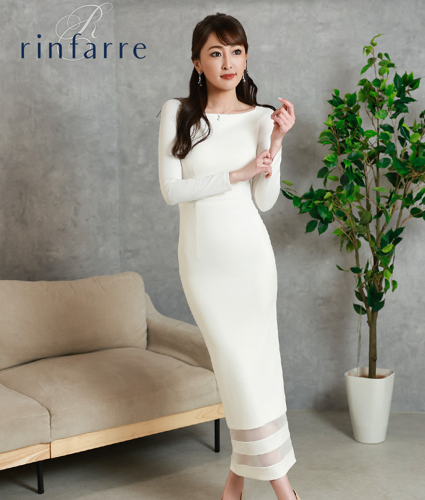 [韓国製][ S-Lサイズ / 1カラー ][rinfarre]ホワイト・ストレッチ・マキシ丈・長袖・タイト・シンプル・ロングドレス・ワンピース[薗田杏奈着用][送料無料]