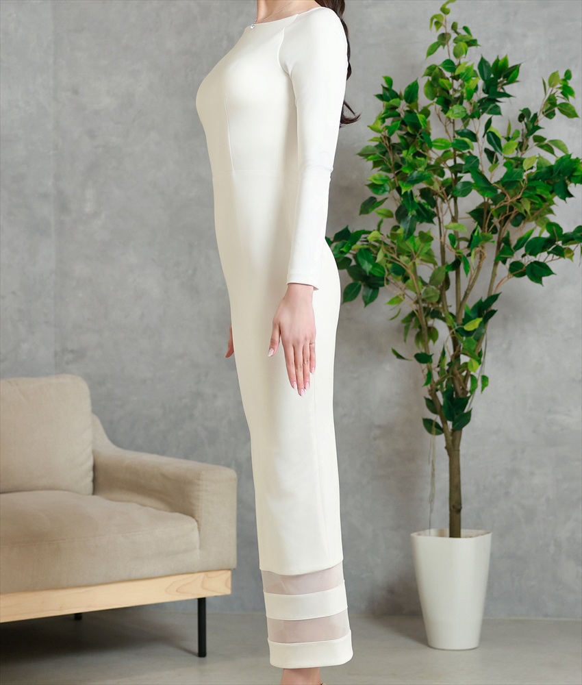[韓国製][ S-Lサイズ / 1カラー ][rinfarre]ホワイト・ストレッチ・マキシ丈・長袖・タイト・シンプル・ロングドレス・ワンピース[薗田杏奈着用][送料無料] [cd-k06271im]