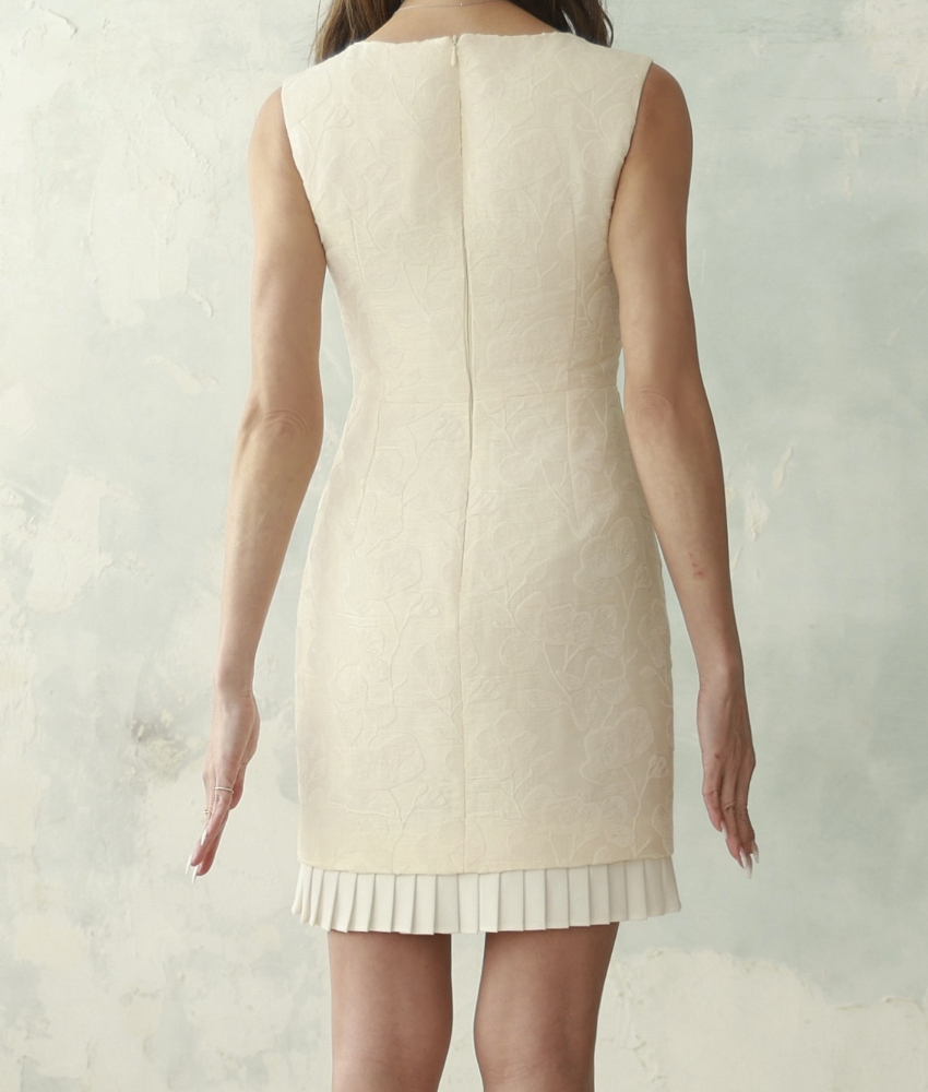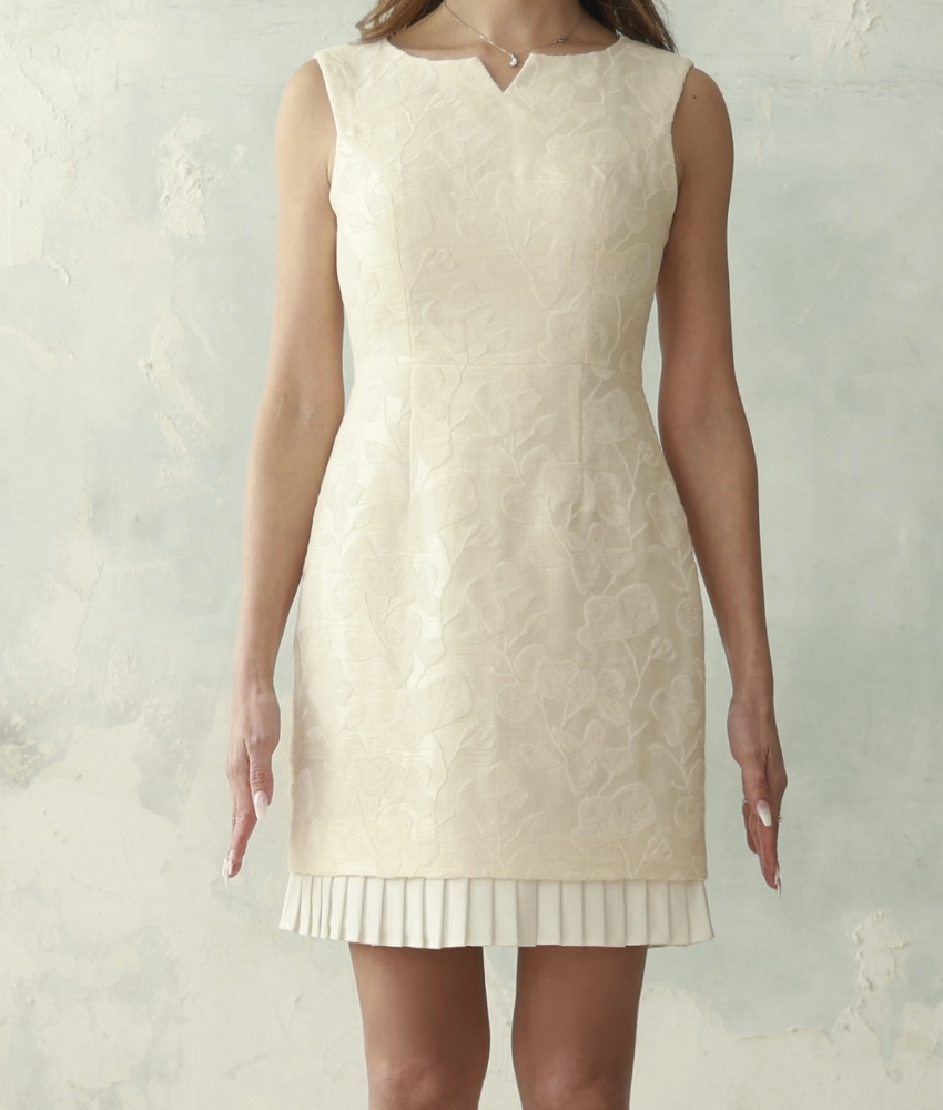 [ XS-Lサイズ / 1カラー][ERUKEI]サテンジャガード・フロッキープリント・Vネック・ノースリーブ・裾プリーツ・Aライン・ミニドレス・ワンピース[送料無料][山崎みどり着用] myiv [lk-c26058]