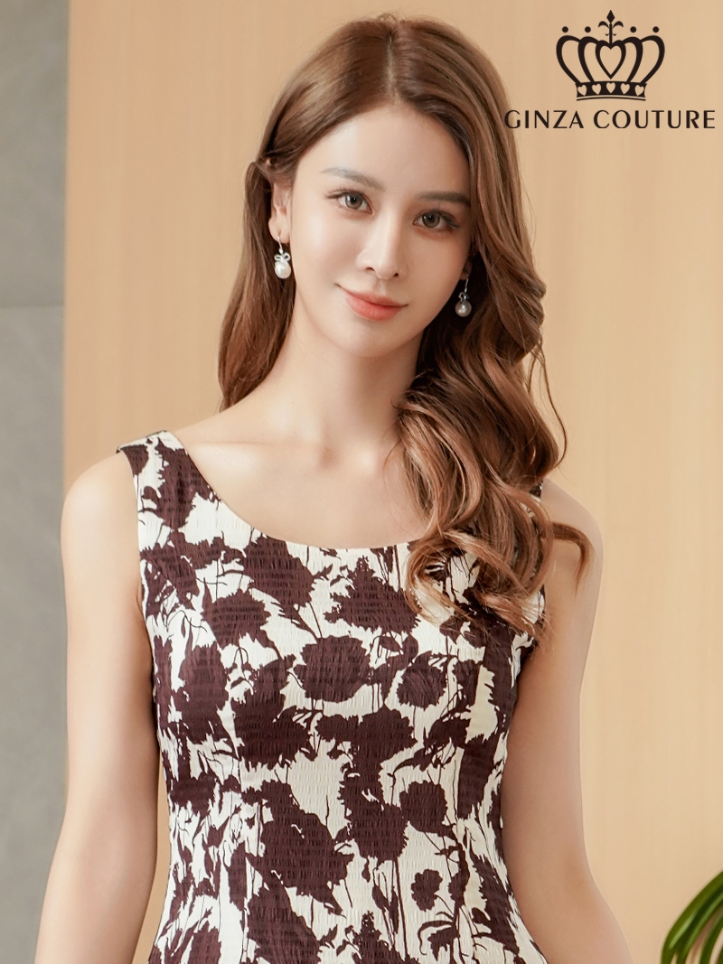 [ XS-Lサイズ / 1カラー][ERUKEI/GINZA COUTURE]花柄・プリント・ノースリーブ・Aライン・ミディアムドレス・ワンピース[送料無料] [lk-c25238]