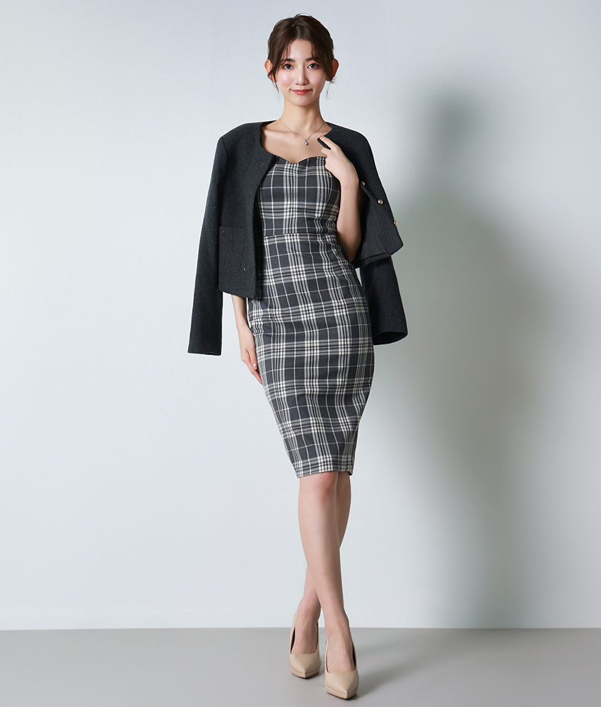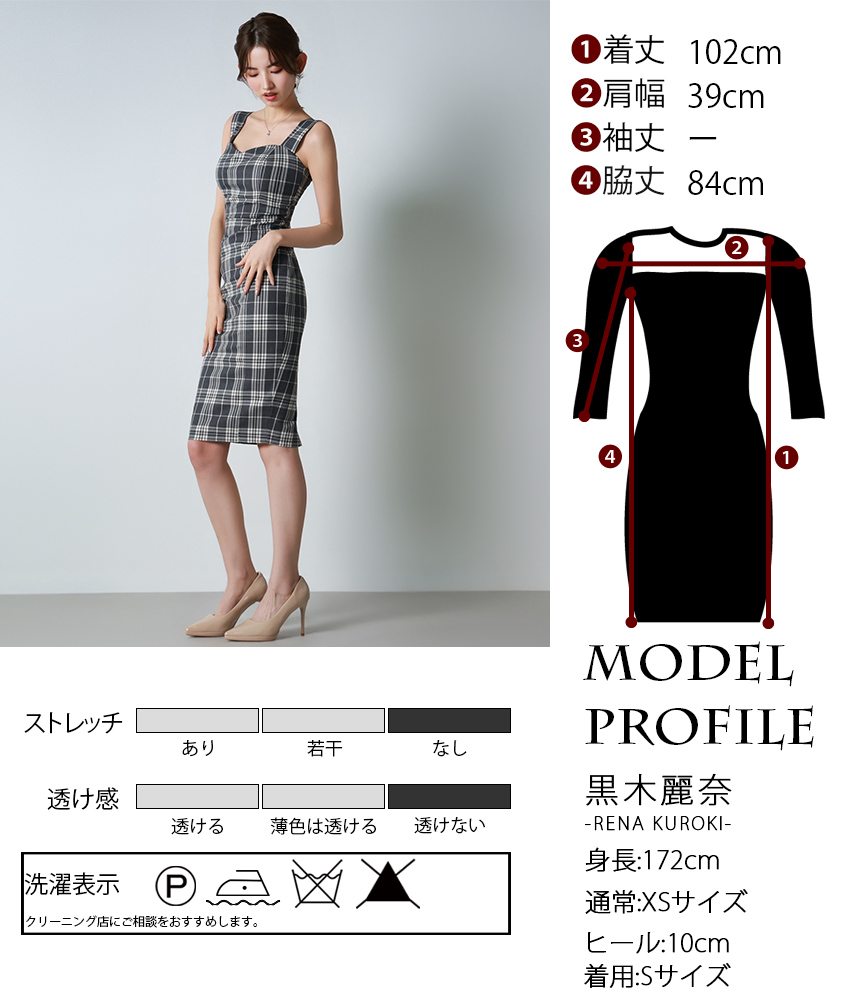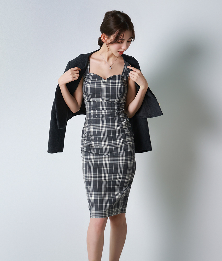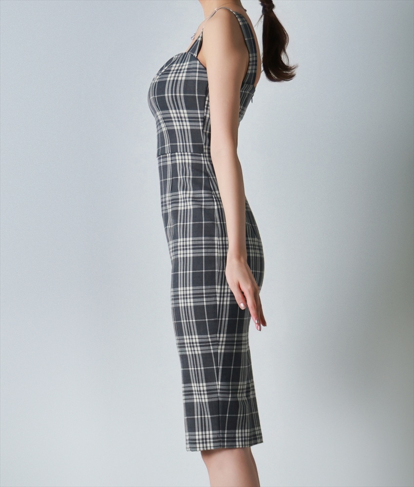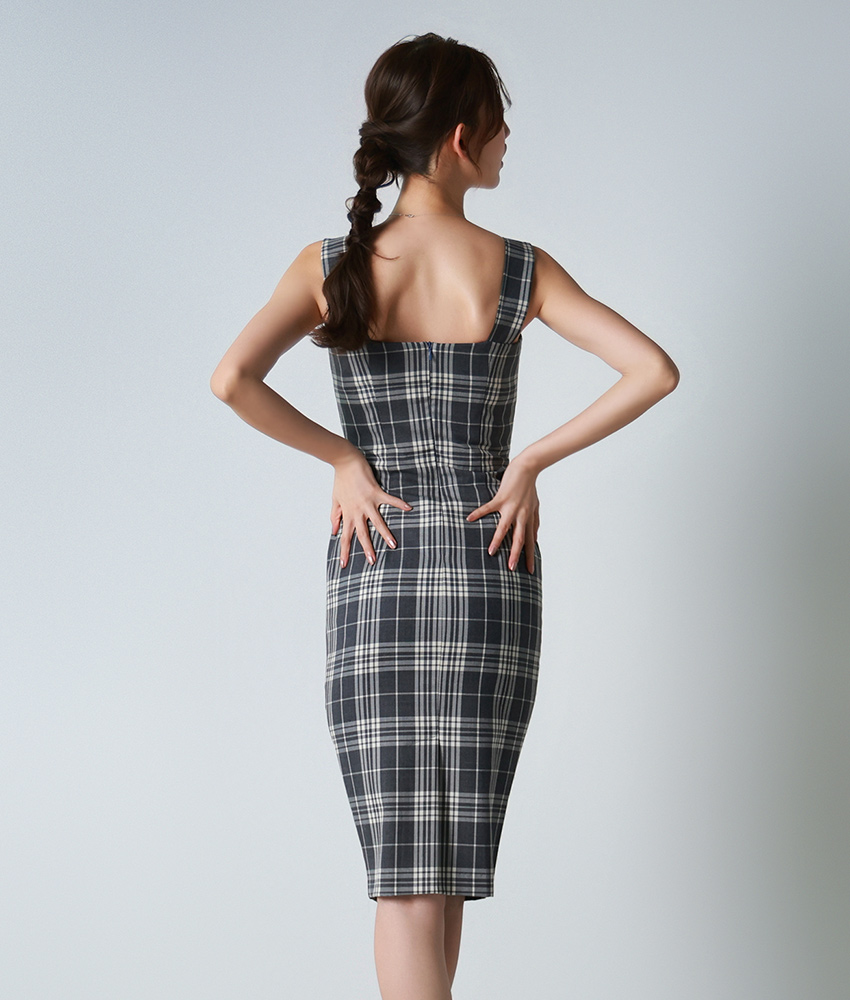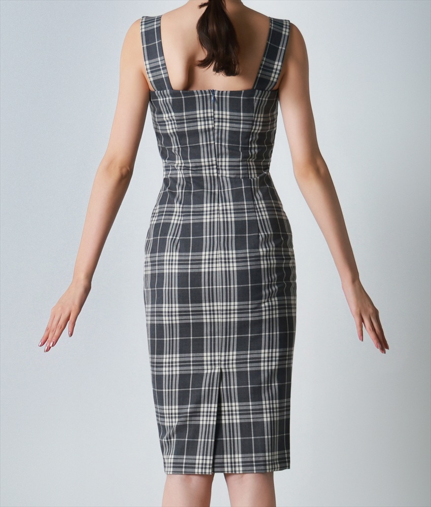 [ S-Lサイズ / 1カラー ][rinfarre]グレー・チェック柄・ノースリーブ・タイト・ミディアム・ワンピース[黒木麗奈着用][送料無料] [cd-k06227p]